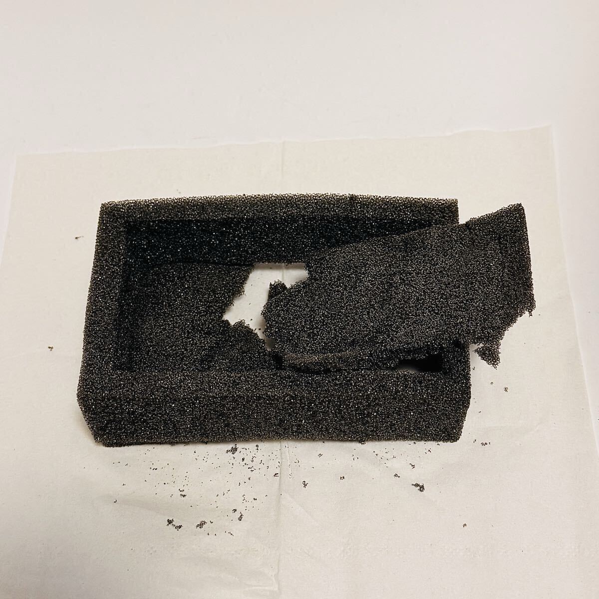 またケースに一部傷があり、クッション用のスポンジが一部ボロボロでした。(発送時はエアパッキンに交換します)