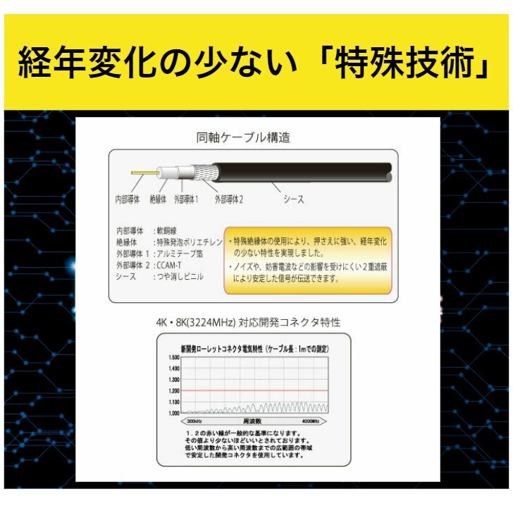 (アウトレット品) マイティ アンテナケーブル 2m テレビケーブル 4K8Kテレビ接続ケーブル 4FBUT2LSG テレビ ケーブル コード 線
