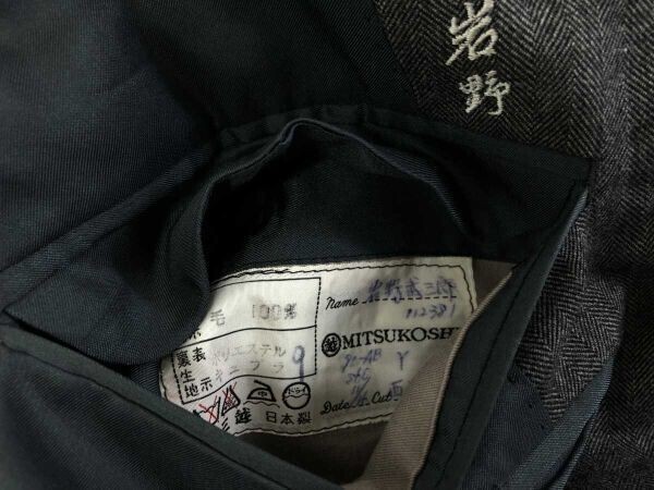 MITSUKOSHI 三越 オーダー フォーマル ヘリンボーン ツイード シングル スーツ上下セットアップ メンズ ウール100% 日本製 90-AB グレー です。