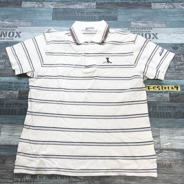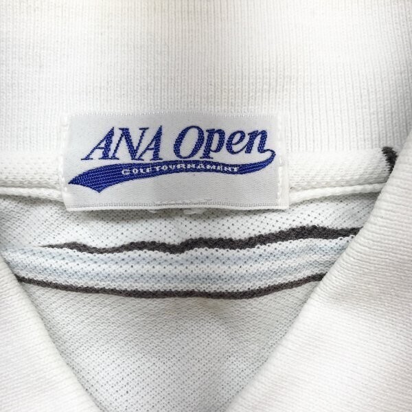 ANA OPEN メンズ ゴルフトーナメント 日本製 ボーダー 鹿の子 半袖ポロシャツ 白 です。