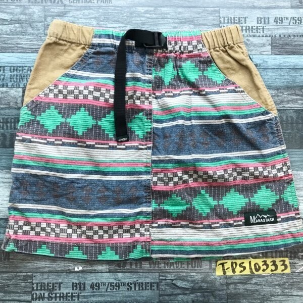 MANASTASH マナスタッシュ レディース アウトドア ベルト付き 総柄 HEMP スカート M 紺グリーンピンク他 です。