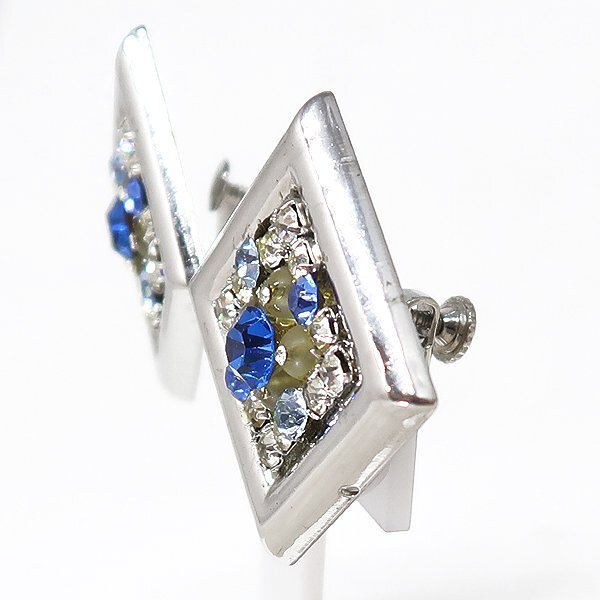 商品名 ラインストーン スクエア イヤリング ねじバネ式