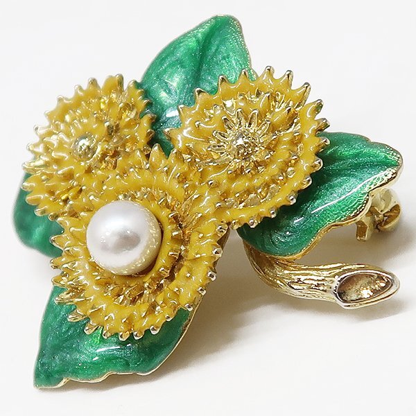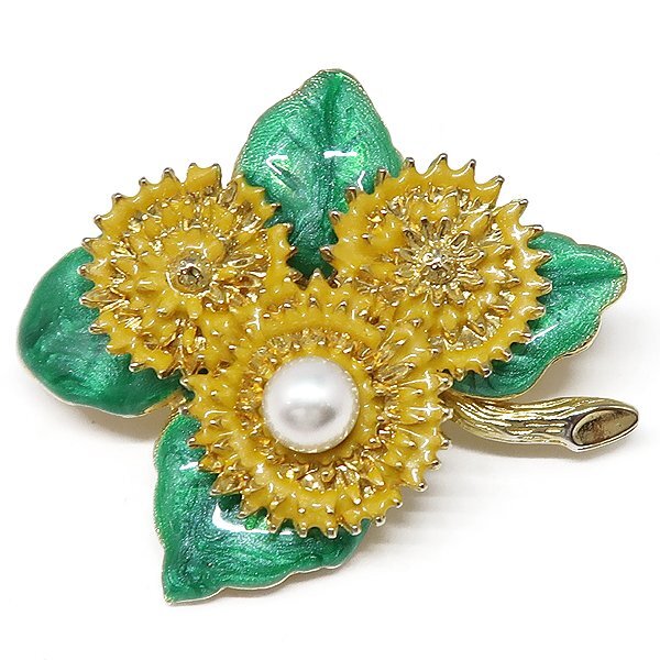 DKG★送料無料 BVA495★ 美品 フラワー エナメル ブローチ フラワーブローチ 菊 雛菊 ひな菊 ブローチ