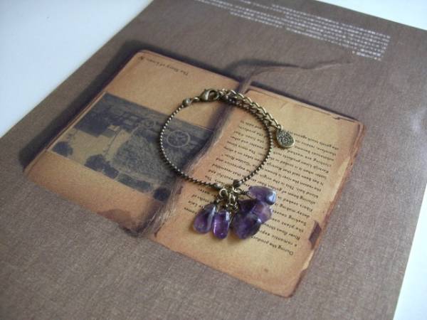 可愛さのスパイス・・シリーズです♪アメジスト・マニア・・神秘的なアメジストのブレスレットです♪繊細なパープルのグラデーションのお色のペタル型が可憐な表情です♪極小のボールチェーンにはトップに11~16ミリ×6~8ミリのアメジストのペタル型を集めました♪動きにあるデザインが素敵です♪長さは16センチ+アジャスター6センチで最長22センチ位です♪トップは2センチ位です♪お揃いのブレスレットやネックレスも出品しています♪シンプルで飽きのこないいつまでも着けられるデザインを考えて作りました!ハンドメイドをご理解頂いてノークレーム、ノーリターンでお願いします