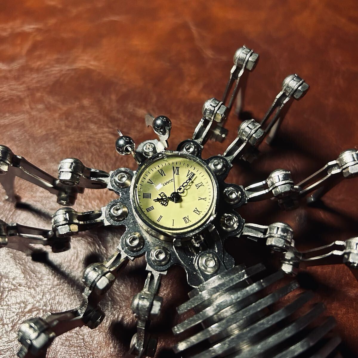 スチームパンク風 クモ型 卓上時計 金属製 インテリア 置き物 アート雑貨 ユニークギフト