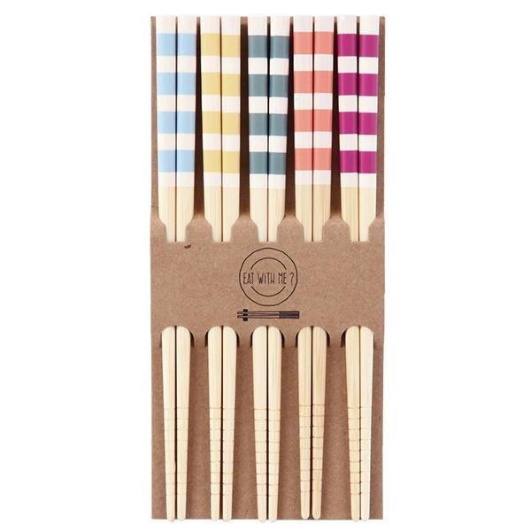 箸 ボーダー 5膳セット おしゃれ 20.5cm 大人 子供 来客 家族 5人分 天然木 景品 お箸 送料無料 1M◇ 箸5本セット:ボーダー