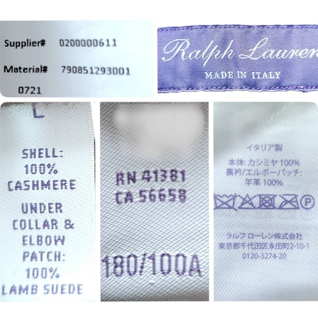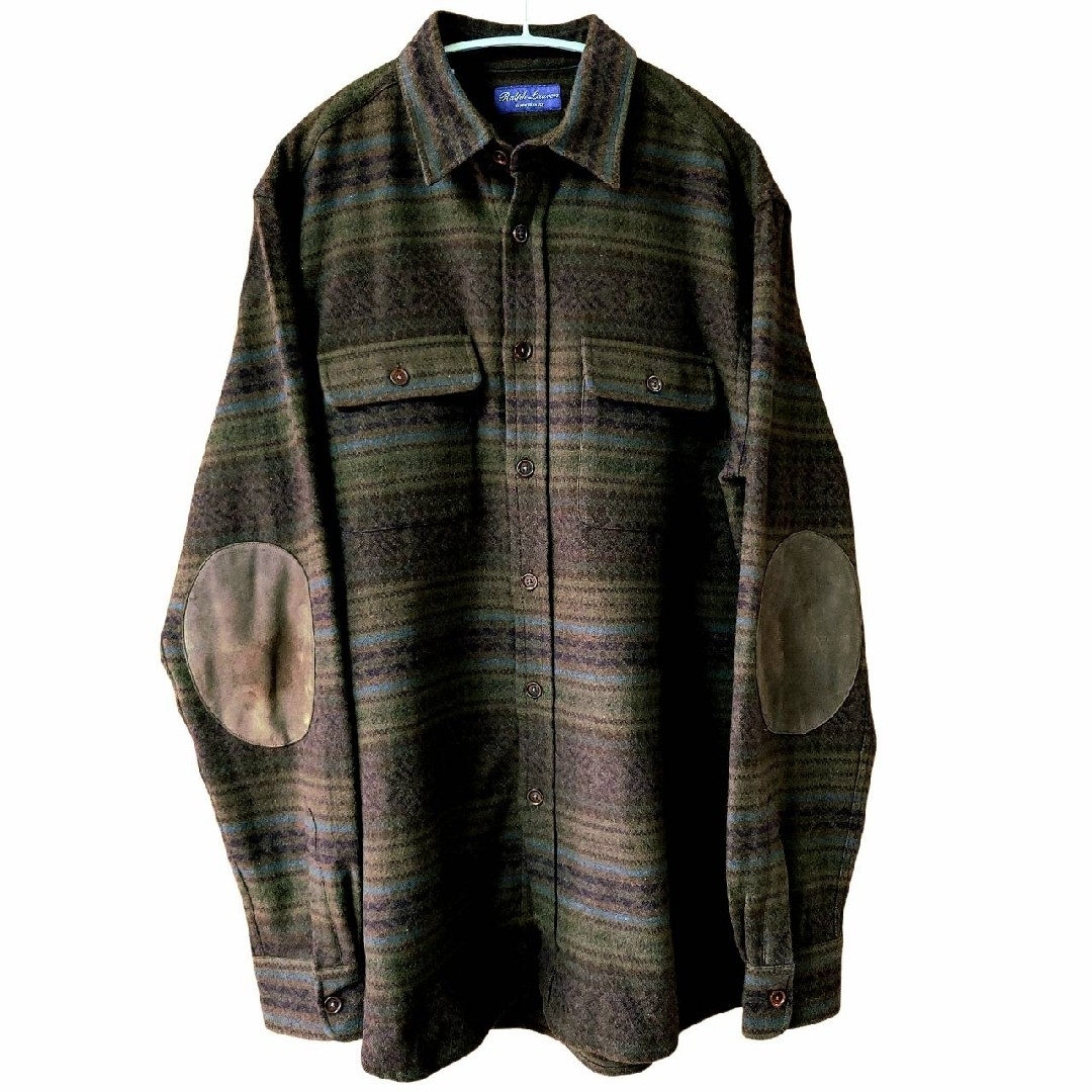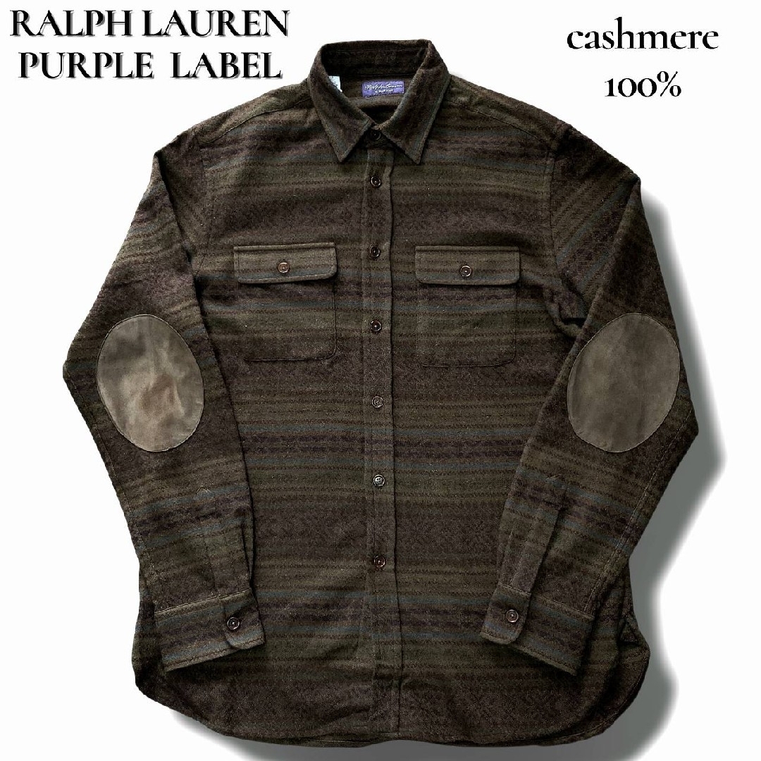 最高峰 ラルフローレンパープルレーベル カシミヤ100% エルボーパッチ付き ネイティブ調 長袖シャツ