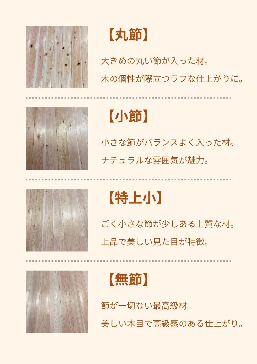 ・ヒノキの特性上、まれに脂が浮き出ることがあります。