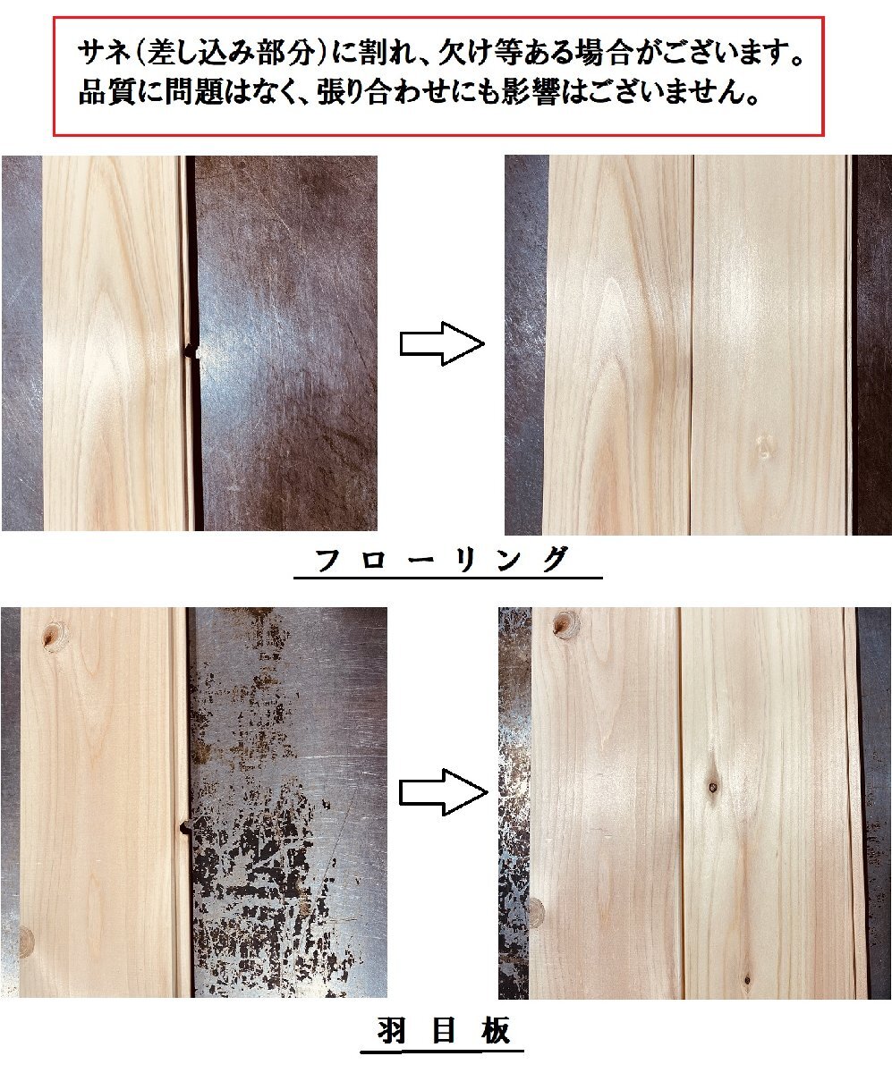 ・寸法誤差あり。端は直角でなく、端部に割れ・抜け節・へこみ等あります。
