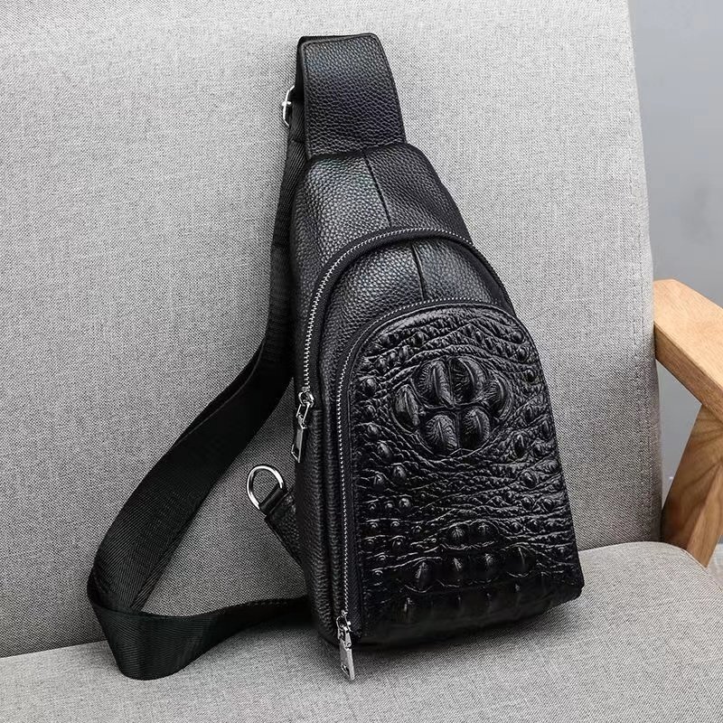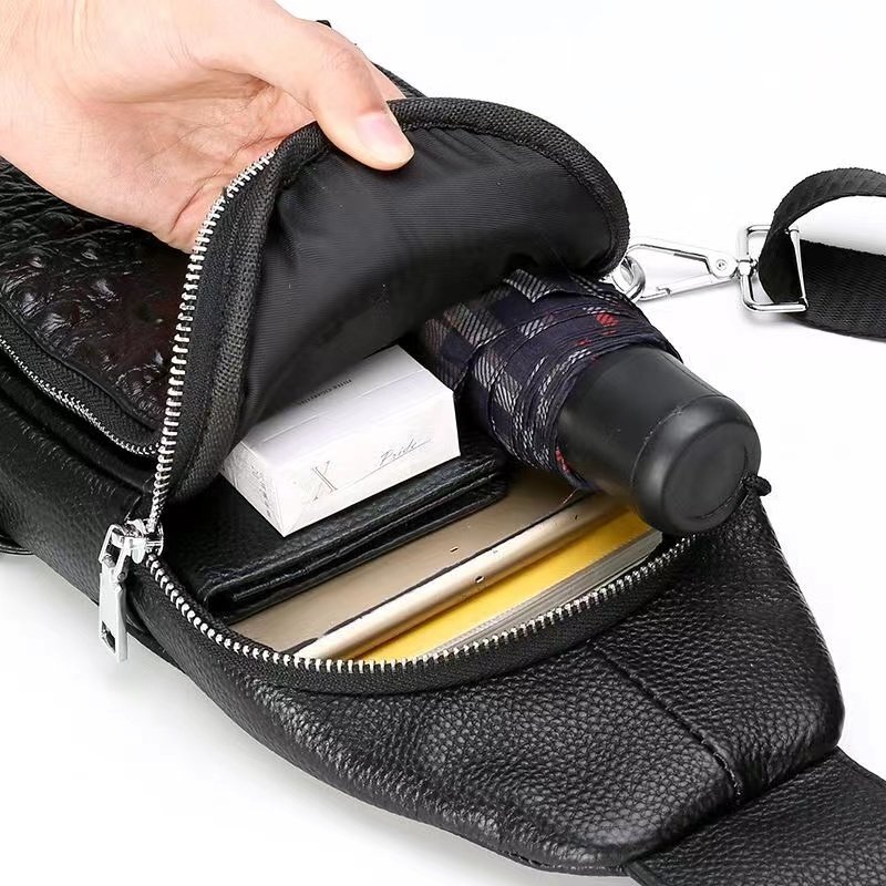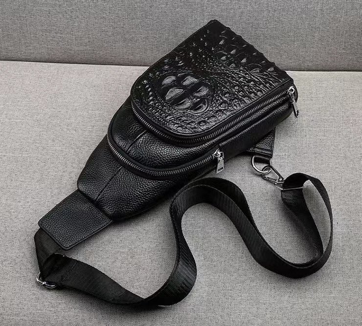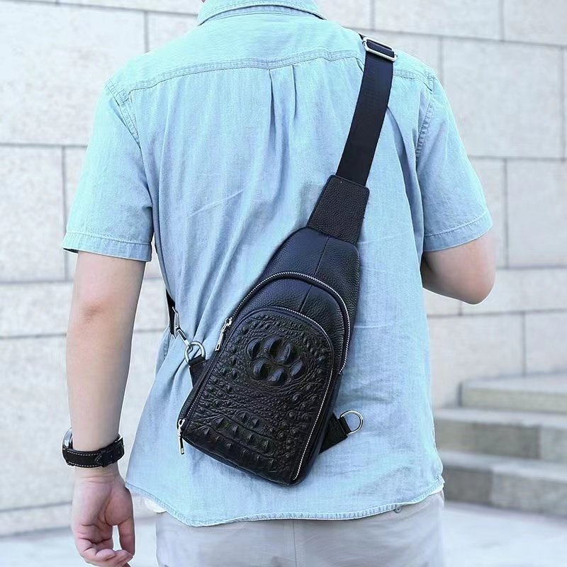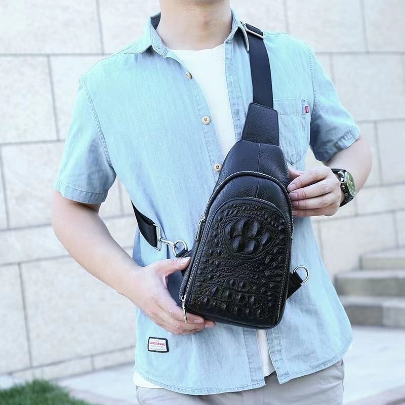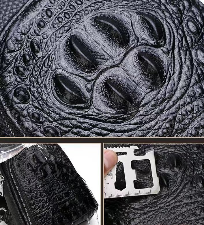 新品 上級牛革 クロコダイル 型押し ボディバッグ 本革 ハンドメイド 斜めがけバッグ 男性用 鞄 黒