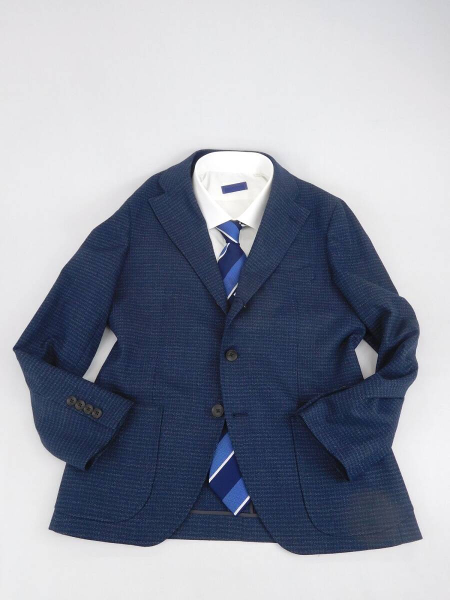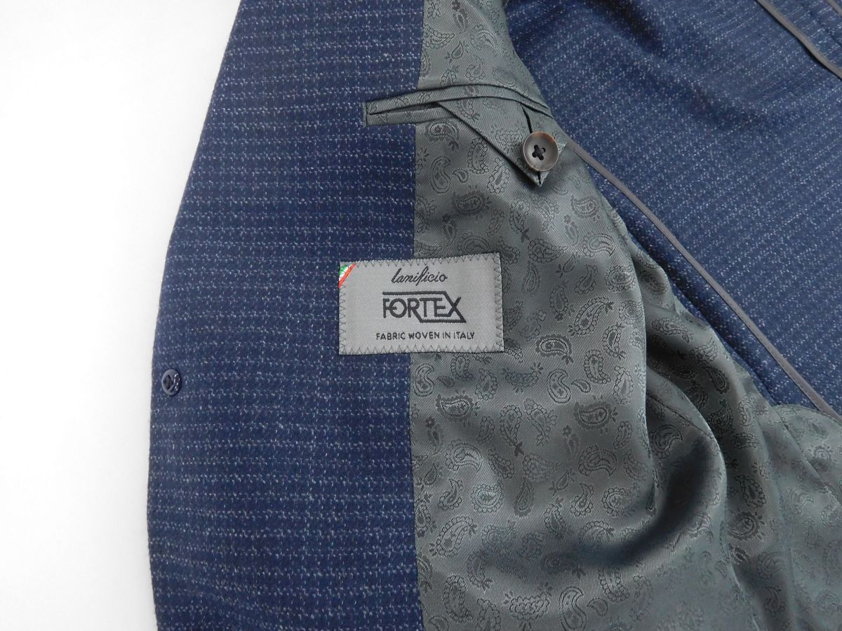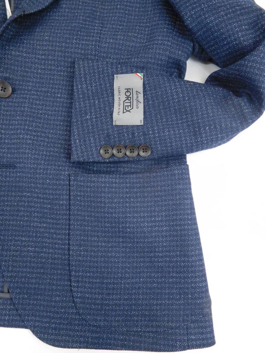 新品4.9万円 高品質 イタリア生地 通年『FORTEX フォルテックス』3ボタン段返り ジャケット ABS ダークネイビー 柄 Sサイズ 517-1