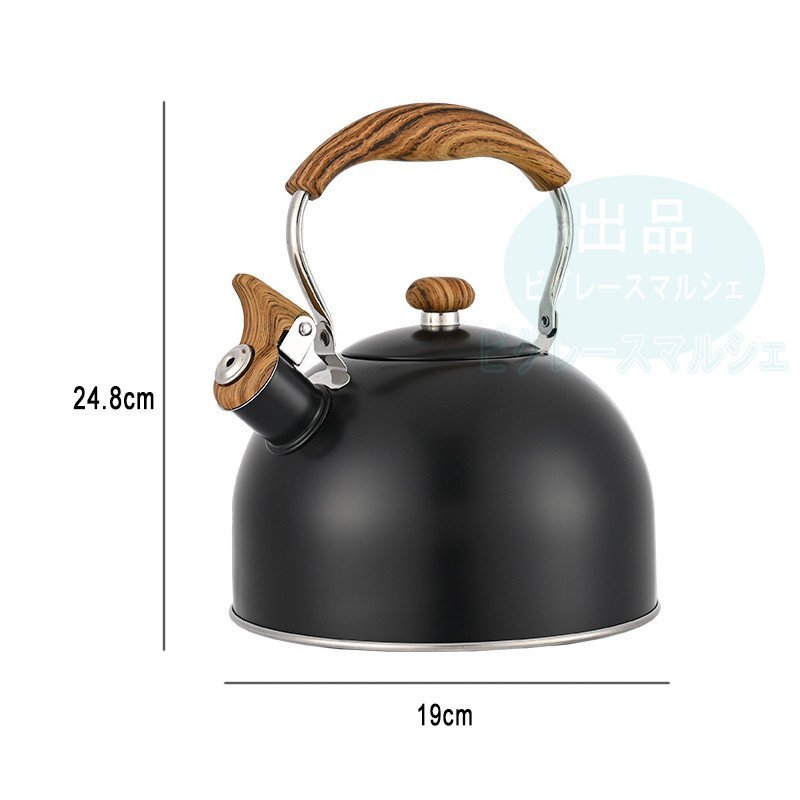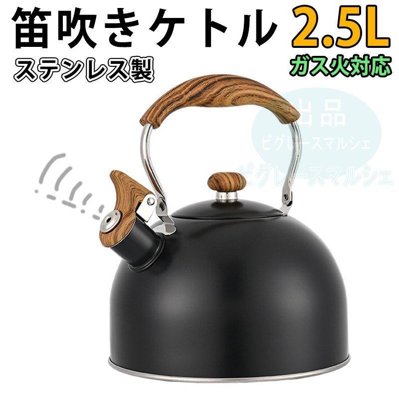 ケトル やかん ステンレス製 笛吹きケトル 2.5L 大容量 広口タイプ IH対応 ガス火対応 直火OK 断熱ハンドル 調理器具 キャンプ hw1420.bk