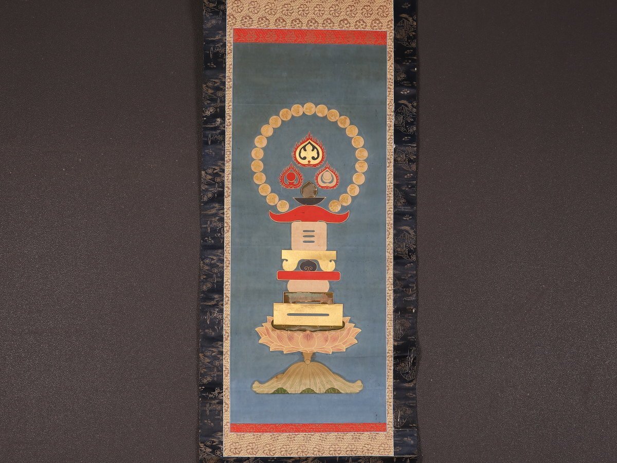 【伝来】am7769 仏画 蓮台宝珠図 梵字 曼荼羅 無落款 中国