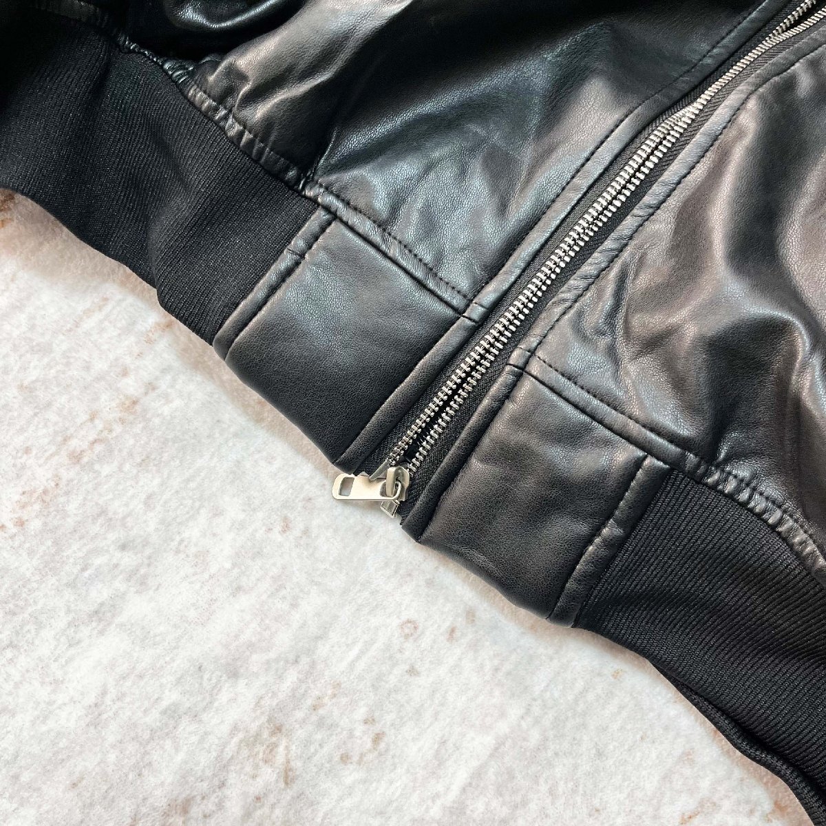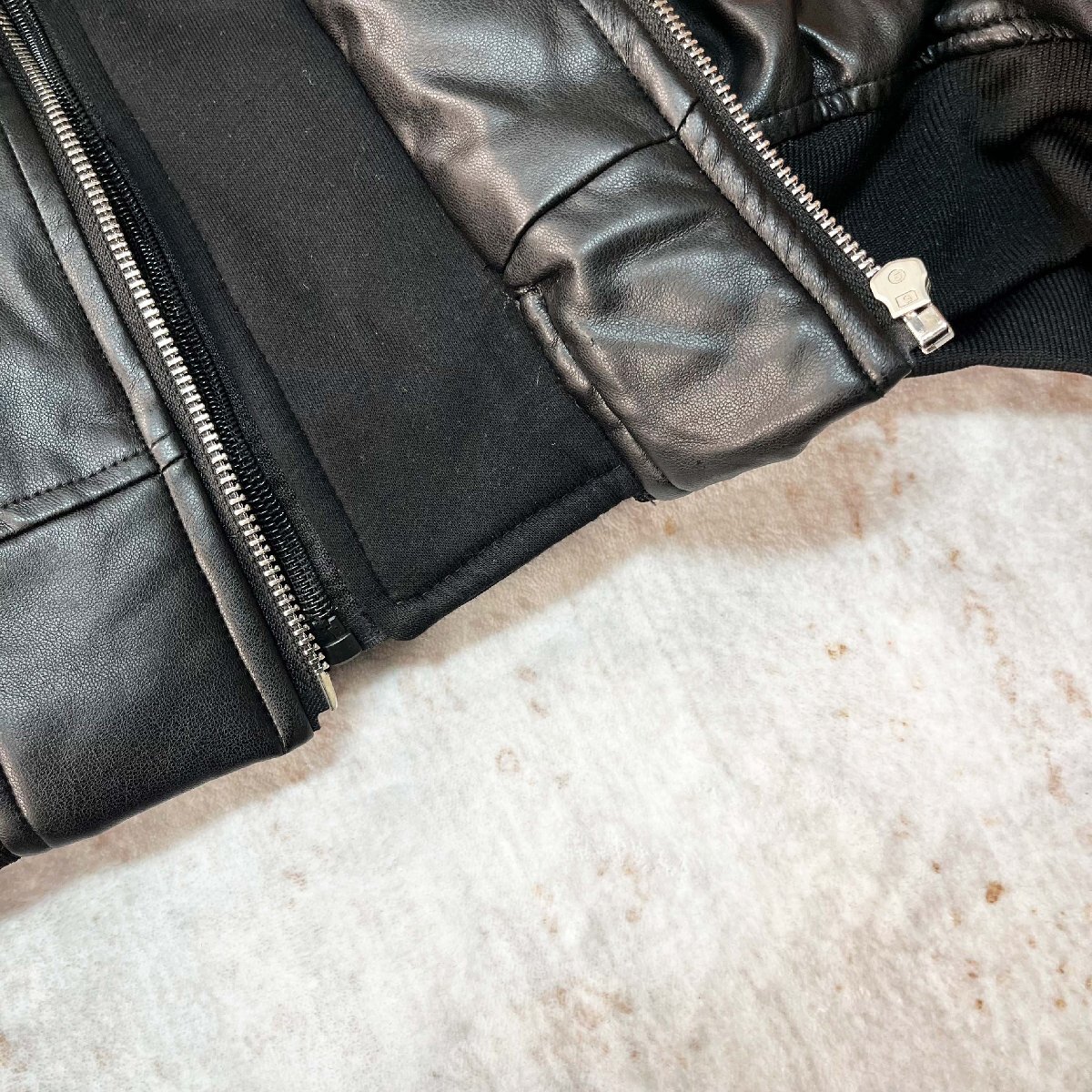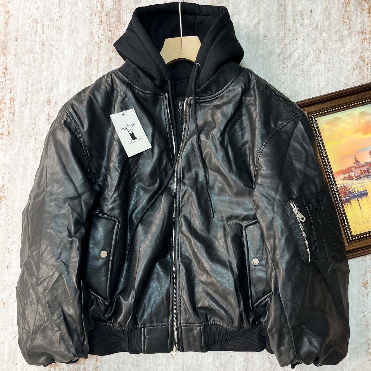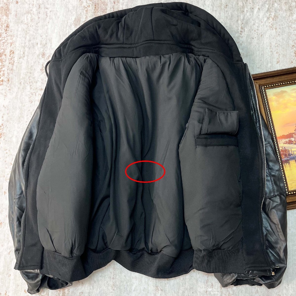 一枚限定 レザージャケット ロンドン製造 コットン混 中綿ジャケット 重ね着 フード付き カッコイイ アウター ライダース 革ジャン SIZE:L