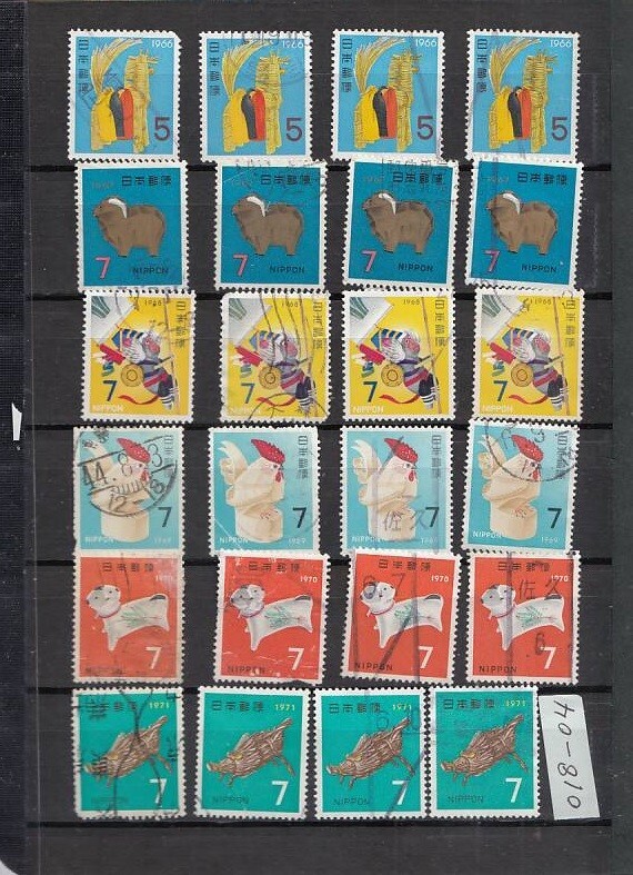 〒nyg-0-018-04 昭和31用(1955年)用~昭和46用(1971年)用  使用済 各4枚(56枚) @ @@