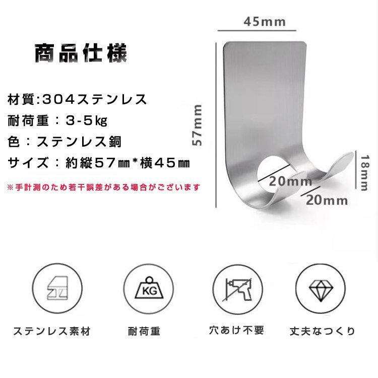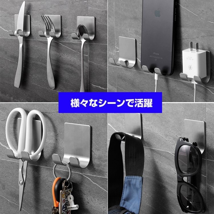 ◆ステンレスフック 5個セット 壁掛けホルダー 粘着強力 様々な箇所に取付可能 収納便利 サビに強い お風呂場やキッチン 玄関 リビング 寝室 職場に スマホホルダー MDSFA69S5