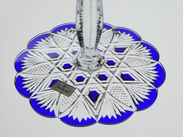 バカラ クリスタル Baccarat 最高級シリーズ TSAR ツァー 色被せ ブルー カット 特大 ワイングラス 35.8cm N885