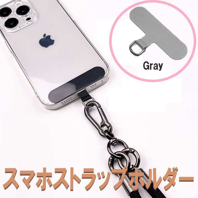 スマホ用 ストラップホルダー グレー スマホショルダー Dカン金具 カード スマートフォンAndroid iPhone