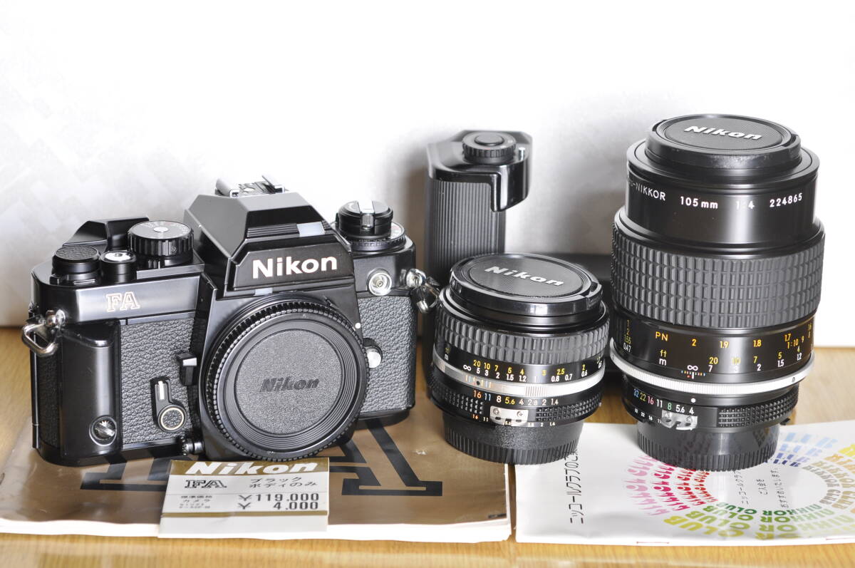 ニコン Nikon FA  Ai-s Nikkor 50mm F1.4と Ai105㎜ F4マクロレンズ付き 完動品です。