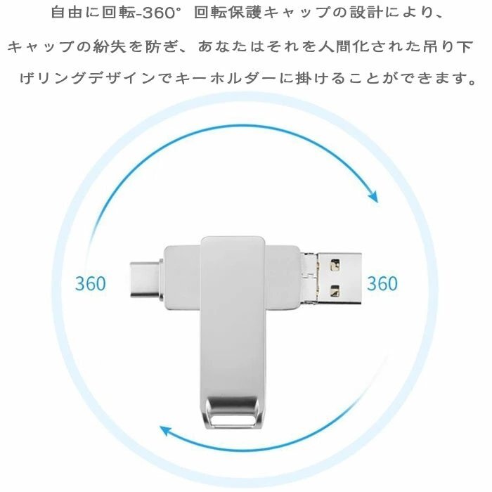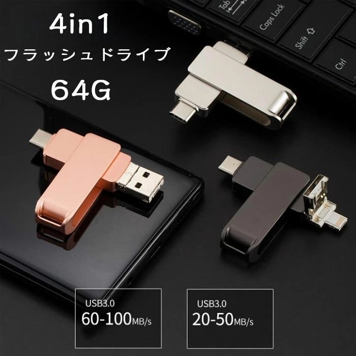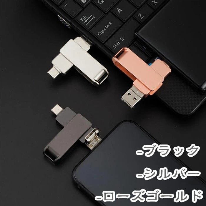 (64GB)4in1 USBメモリ 高速 Phone usbメモリー USB/Type-C/micro usb フラッシュドライブ 回転式 保存 写真 ☆多色選択/1点