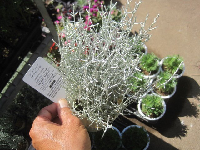 シルバーの針金のような茎と葉が特徴的なカラーリーフ植物で、寄せ植えやハンギングバスケットに人気です。