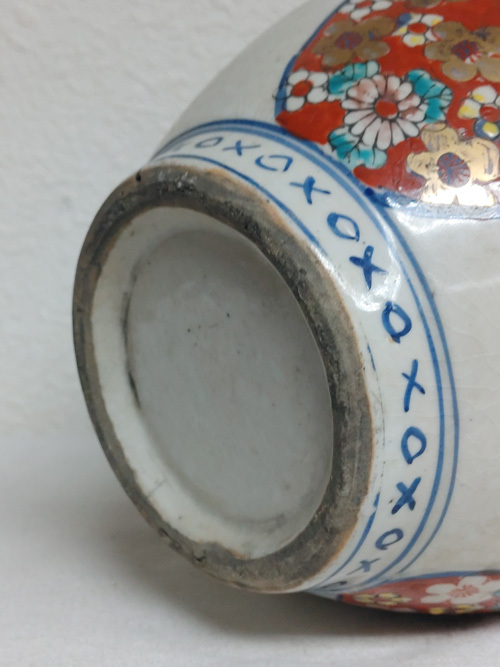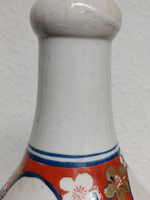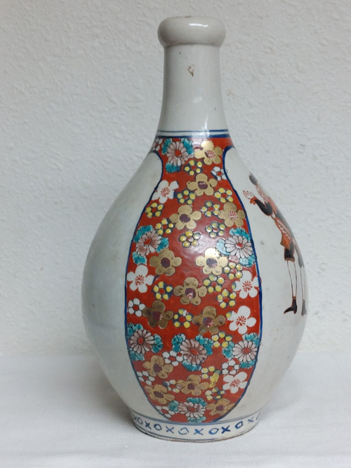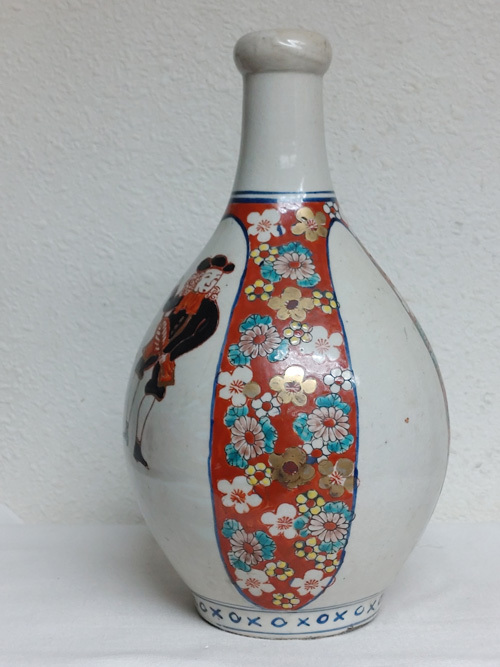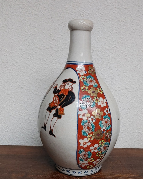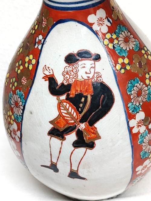 江戸期の古伊万里 色絵 南蛮人図のガリポット形 大徳利です。