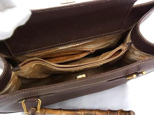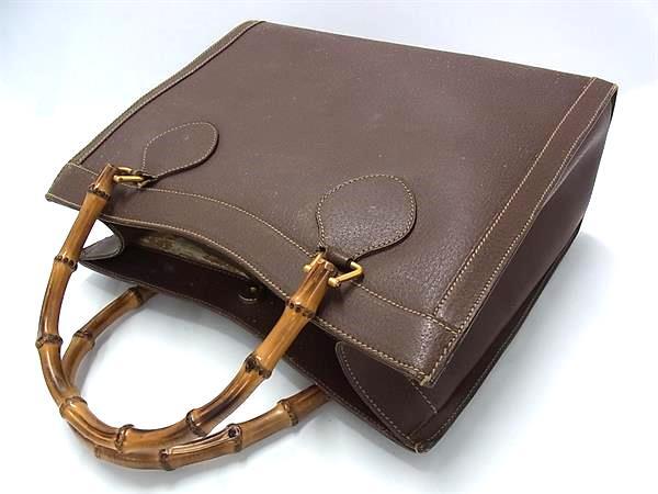 1円 GUCCI グッチ 002 1186 0260 バンブー レザー ハンドバッグ トートバッグ レディース ブラウン系 FS5555