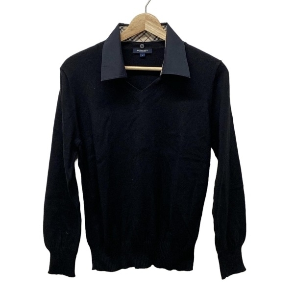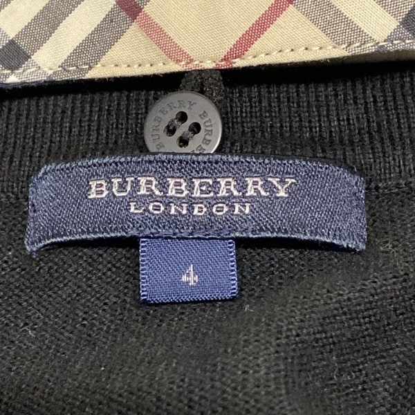 バーバリーロンドン Burberry LONDON 長袖セーター/ニット サイズ4 XL - 黒 レディース Vネック/秋・冬物/襟取り外し可 トップス