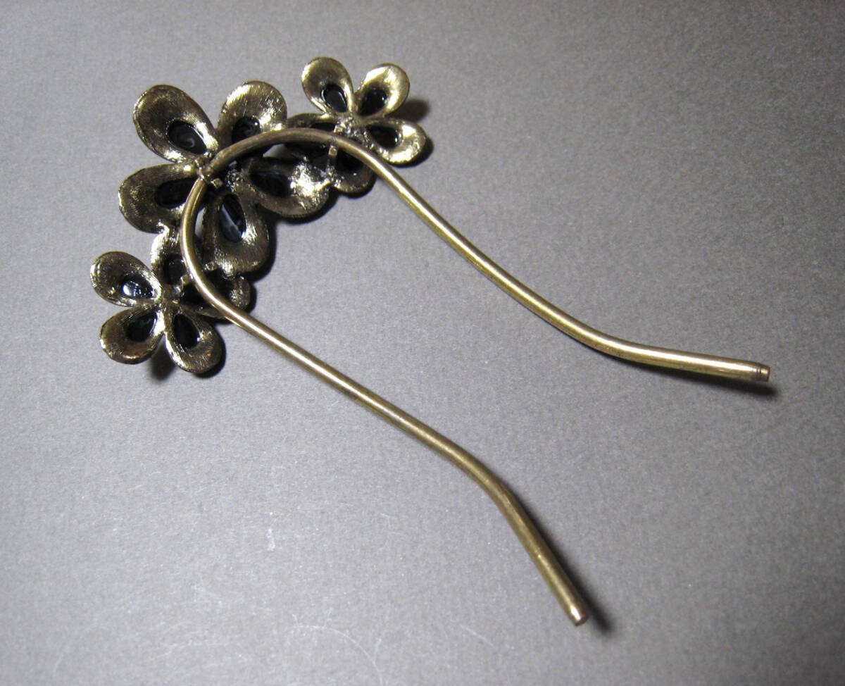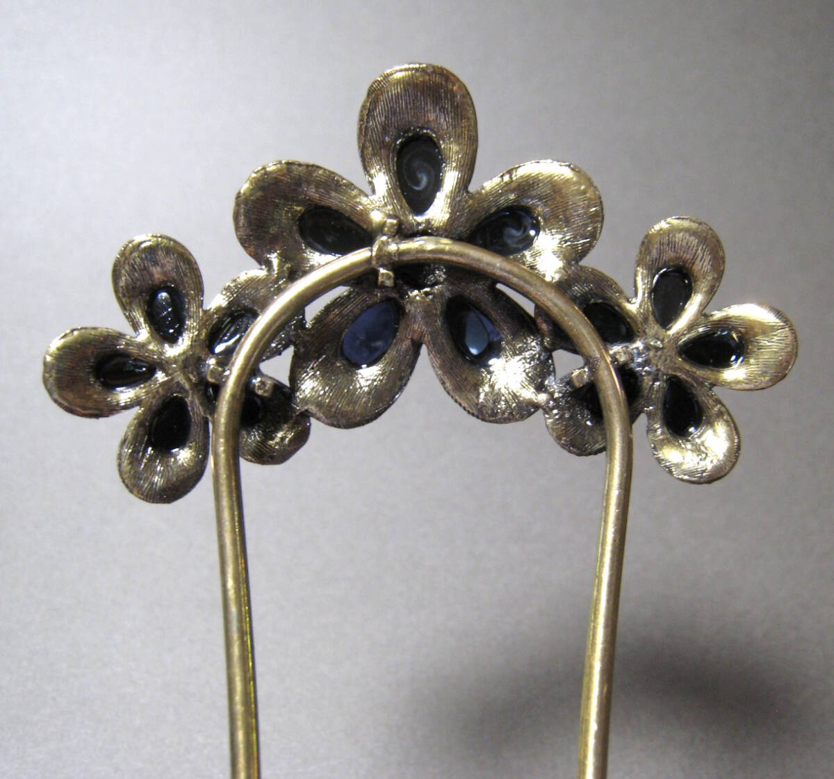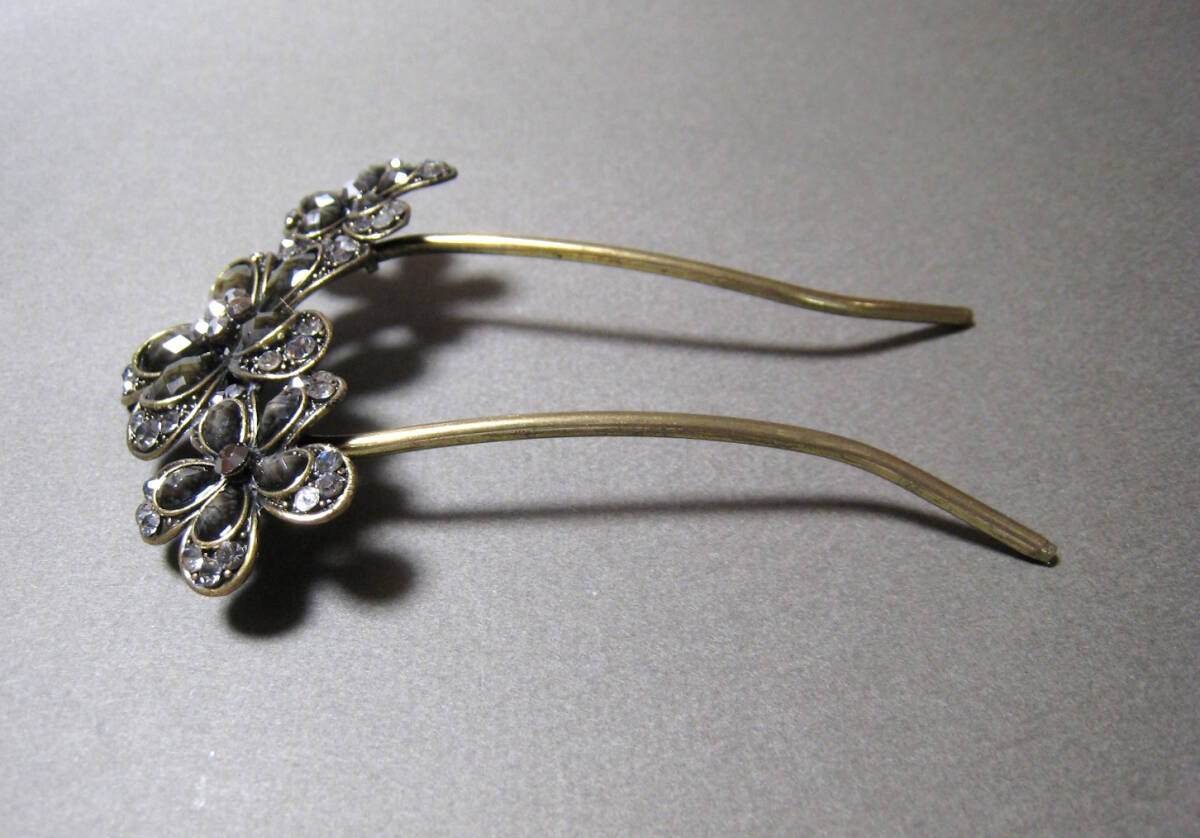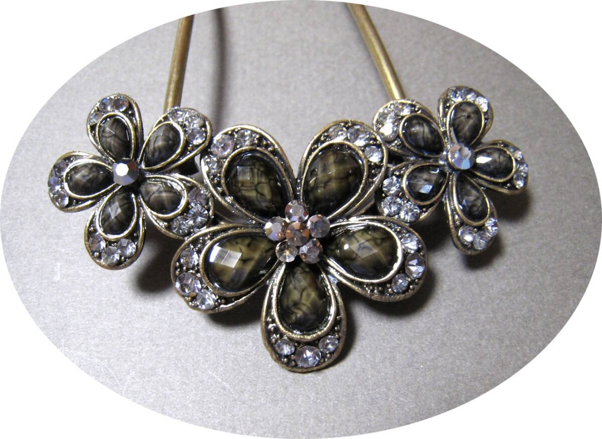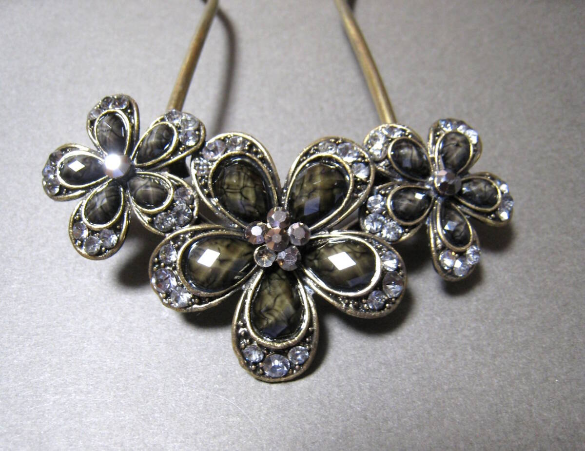 三つ花 彫金 グレー ガラスビーズ 簪 和洋装 髪飾り シック 花 かんざし