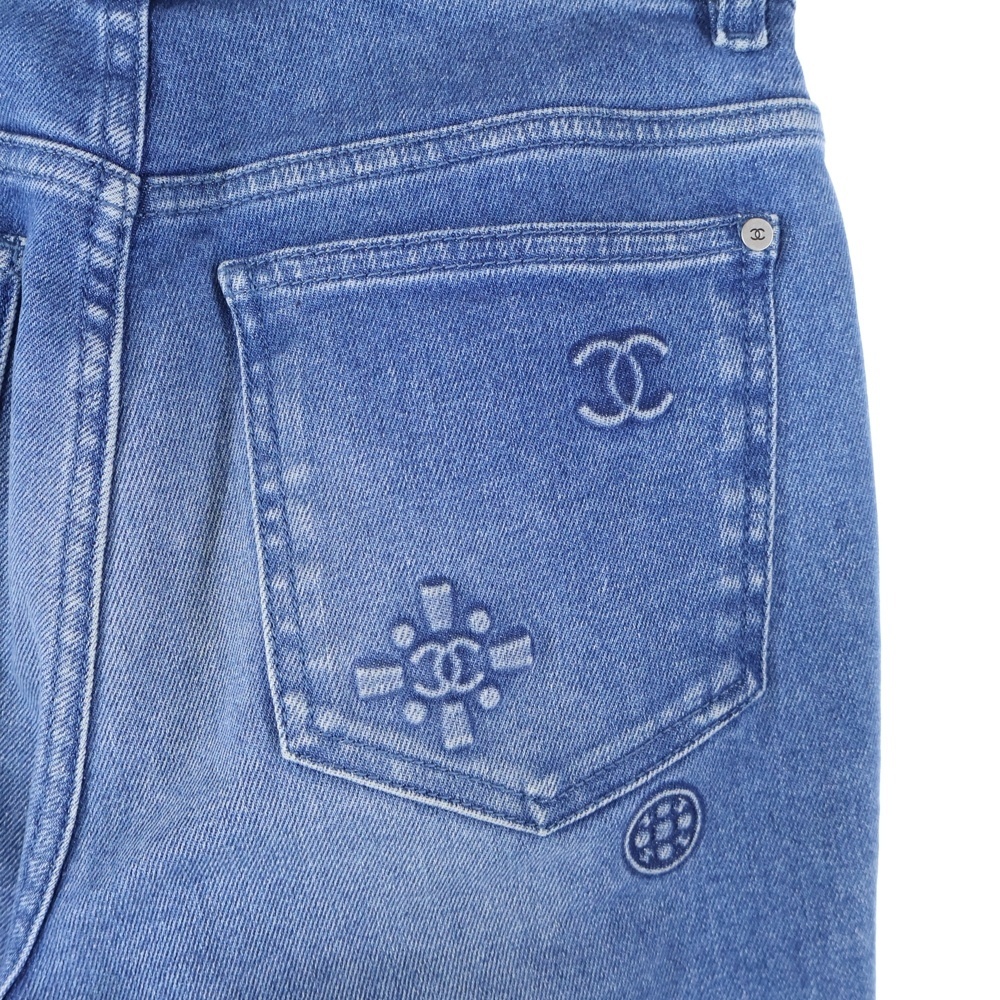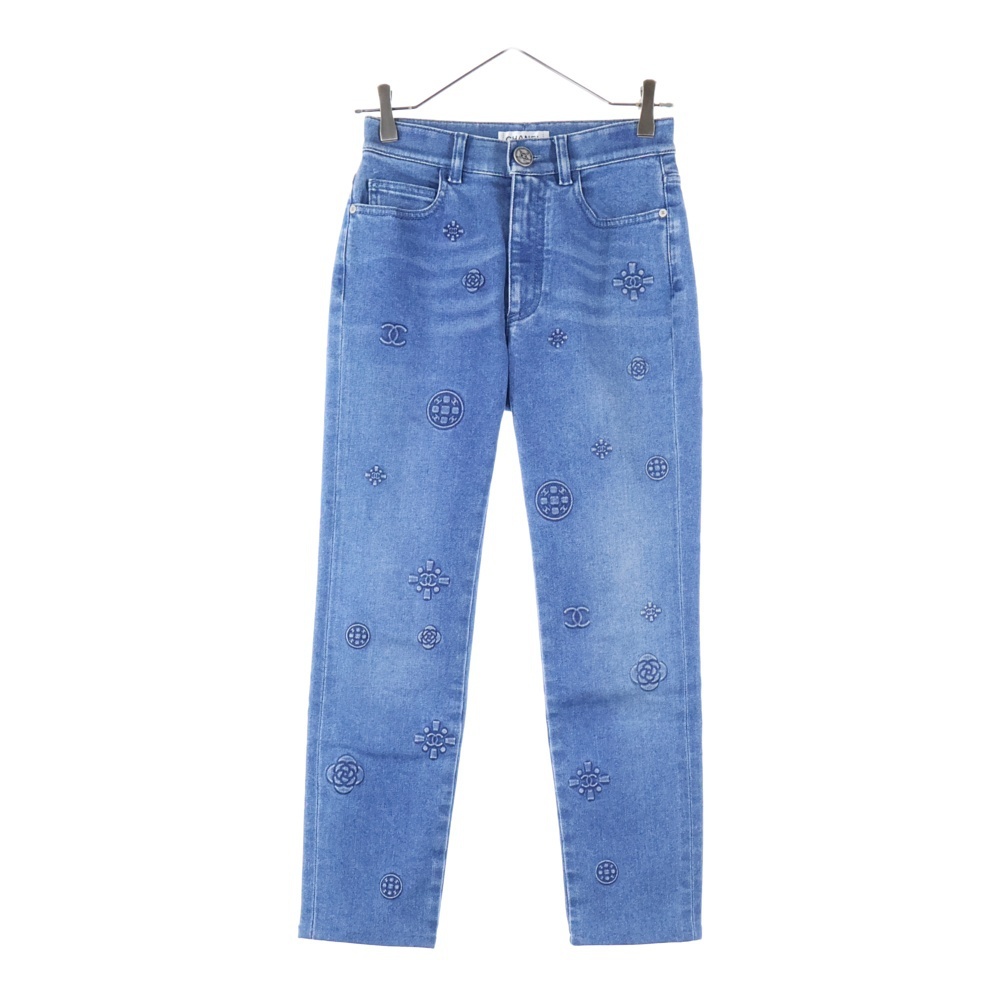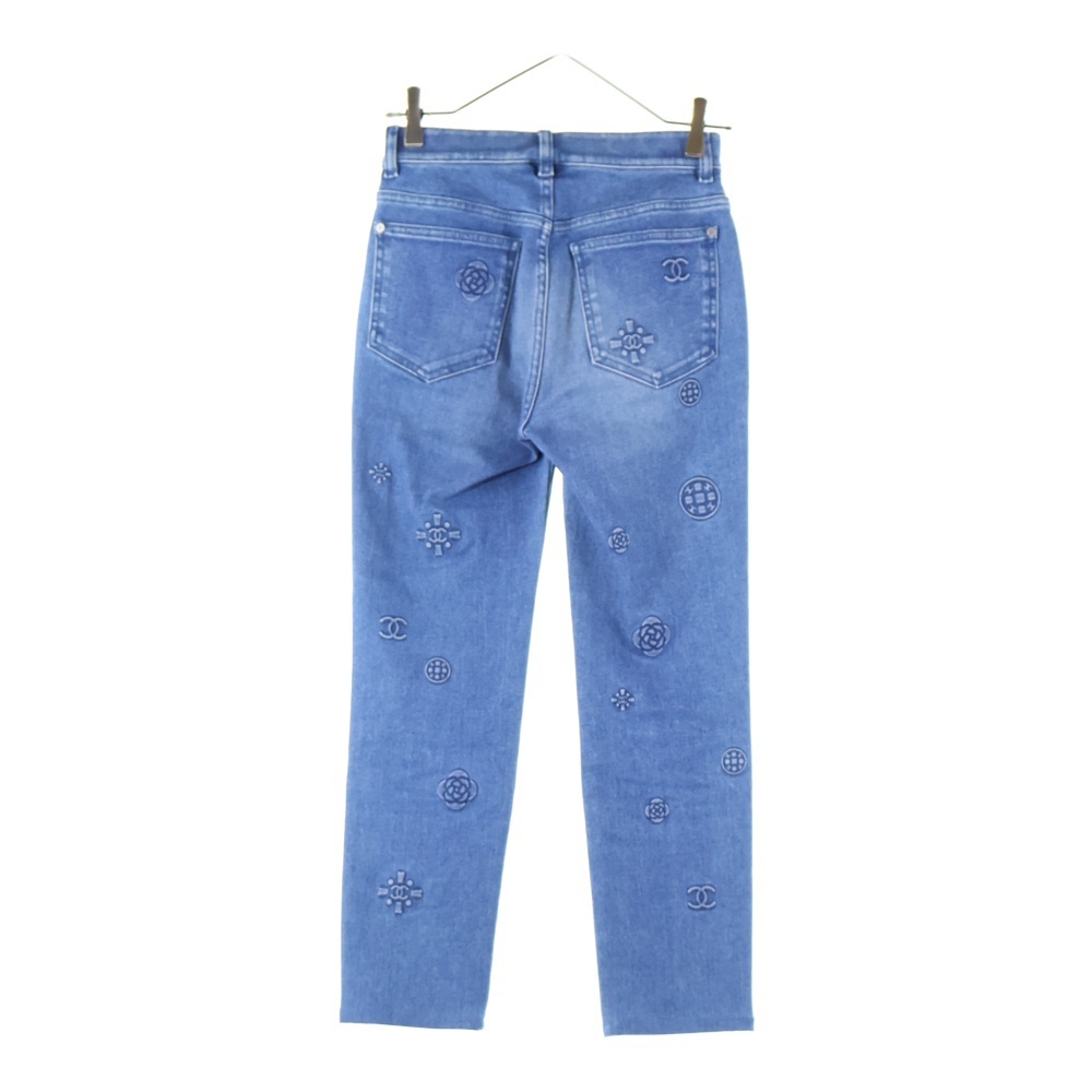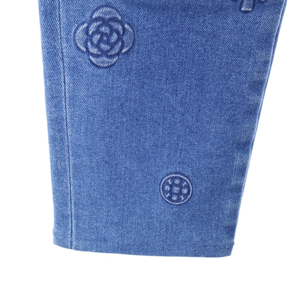 CHANEL シャネル ココマーク カメリア エンボス ストレッチ スリムスキニー デニムパンツ ジーンズ インディゴ レディース P70206V61785