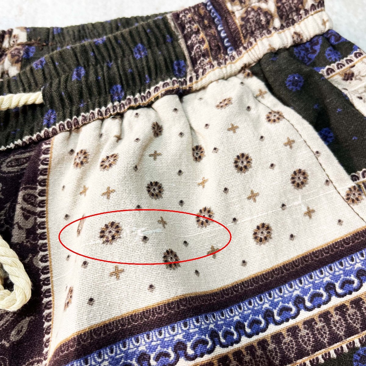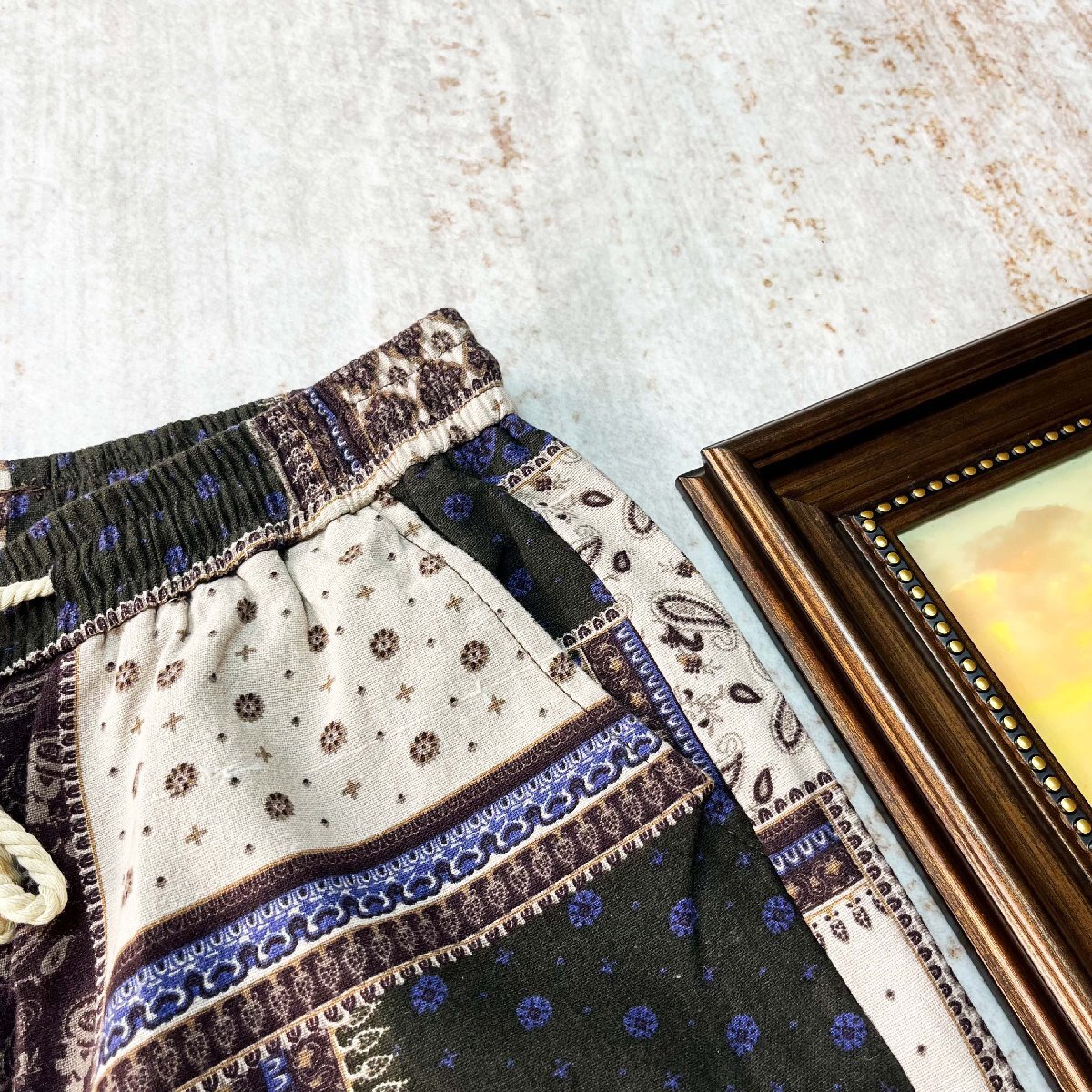 一枚限定 ショートパンツ ロンドン製造 個性 リネン混 パッチワーク 総柄 民族風 レトロ 短パン 半ズボン ボトムス リゾート 夏服 SIZE:XL