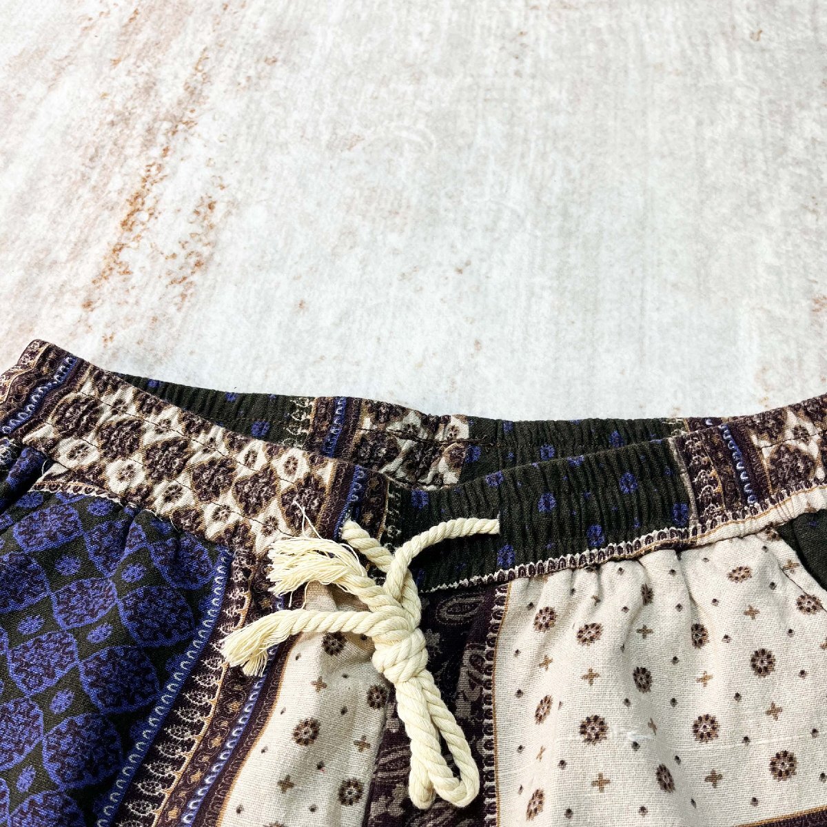 ヴィンテージ感のあるパッチワークデザインのショートパンツです。