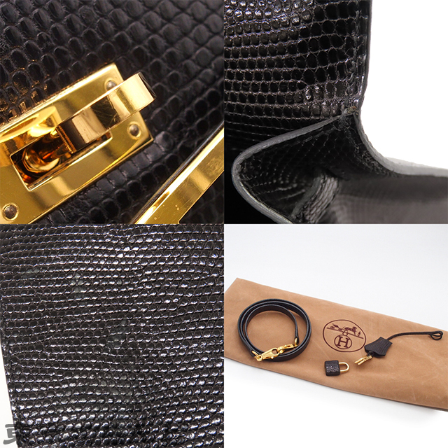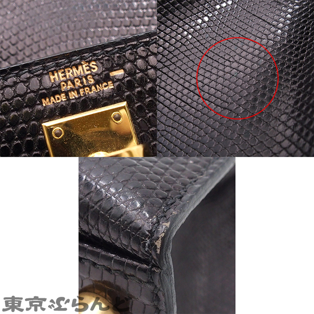 101768918 エルメス HERMES ケリー 25 □E刻印 ブラック ゴールド金具 リザード 外縫 2WAY ハンドバッグ ショルダーバッグ レディース