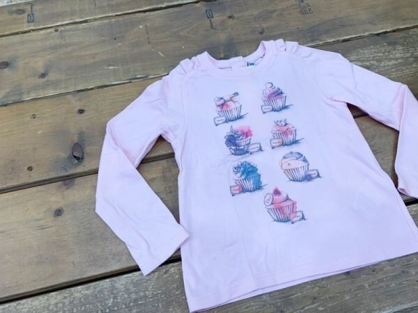 1561★babyDior/クリスチャンディオール ベビーディオール カップケーキプリントキッズトップス ピンク 長袖 36M 女の子用 子供服 ★