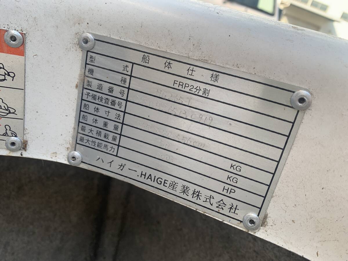 | 8/106☆FRP2分割 HG265T ボート ミニボート 船 ハイガー産業 HAIGE 直接引取限定 全長約263cm 写真追加有☆ | |