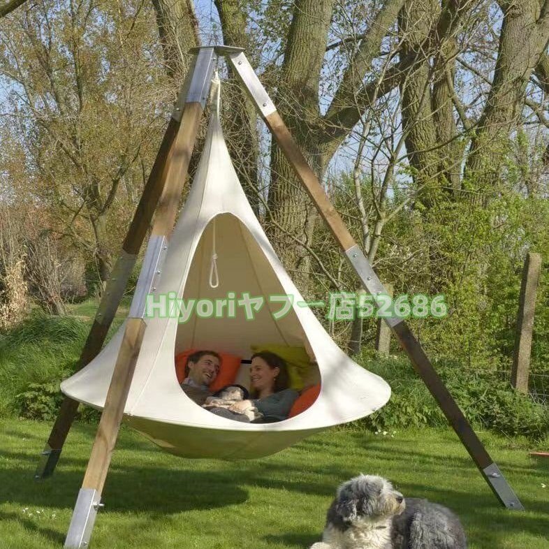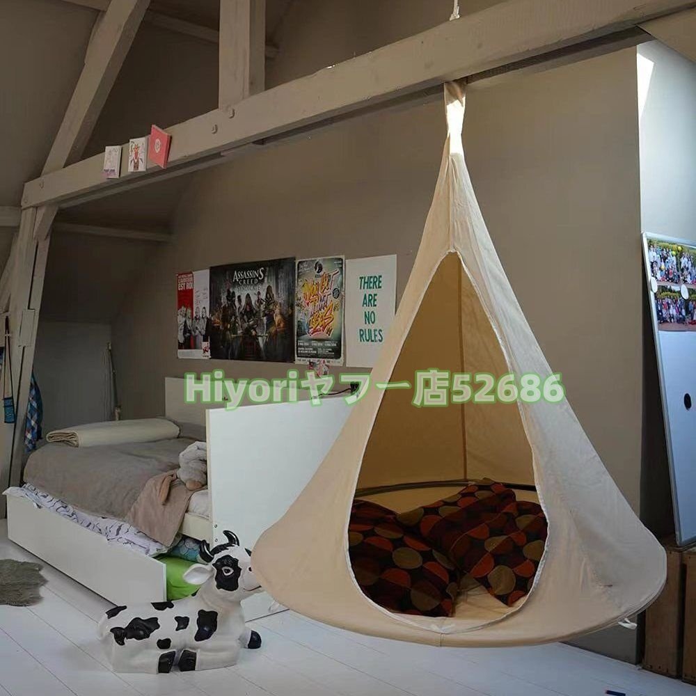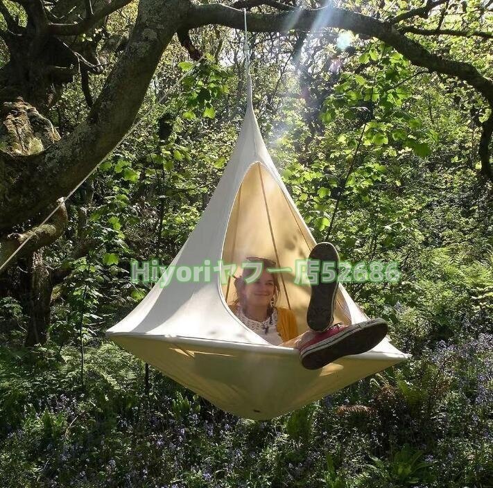 【高品質のガーデンハンモック】厳選されたオックスフォード生地を使用し、防水・紫外線加工を施しています。ユニークな円錐形のUFOの形、有毒物質や化学臭が含まれていません。ハンモックスイングチェアは、日本のPSC安全認証要件に準拠しています!最大積載重量は200kgなので、2-3人の子供が同時に遊ぶことができます。ハンモックに座ると、倒れたり破れたりしない小さな家のように、360度に囲まれます。