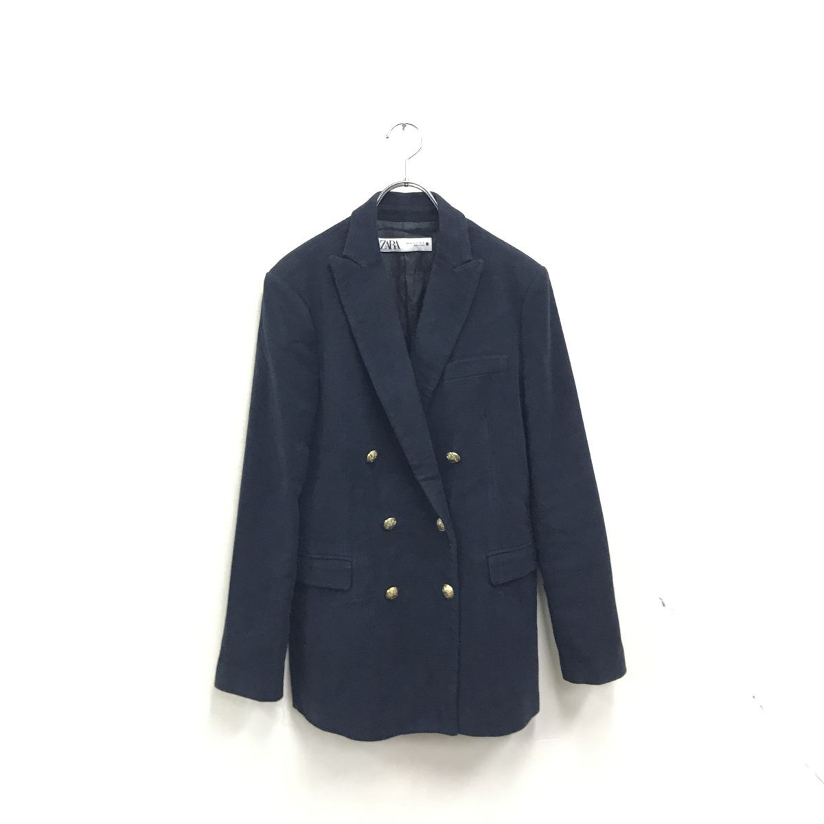 2O3142-U◆ZARA ダブルブレストジャケット 起毛 ブレザー 金ボタン アイビー カジュアル ビジネス ユニセックス◆sizeM 紺 ネイビー