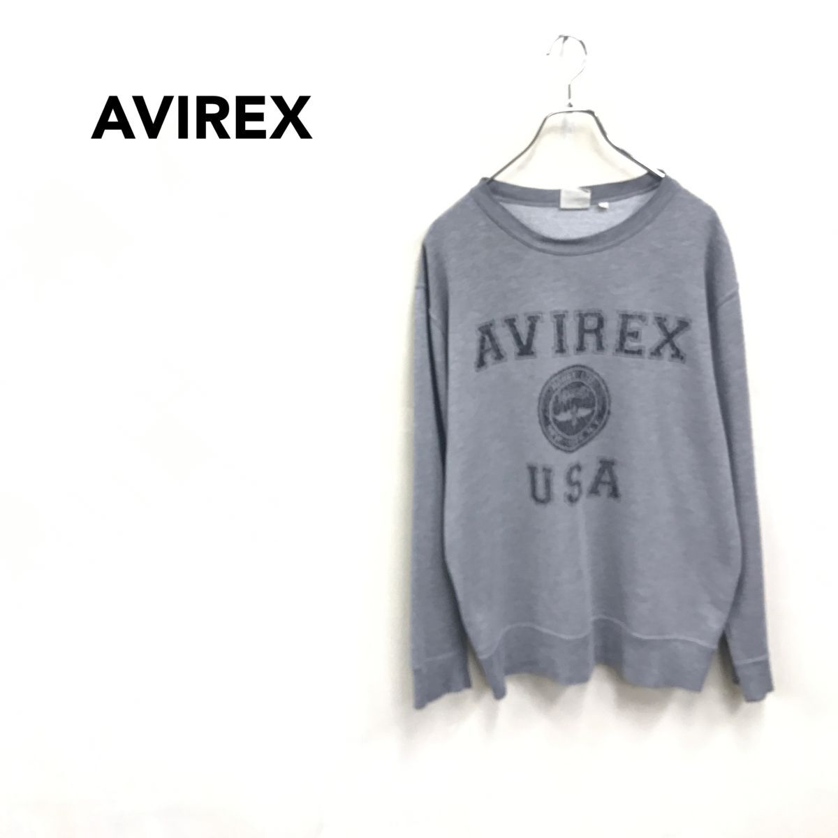 2O3396-O◆AVIREX アヴィレックス 長袖トレーナー 丸首 ブランドロゴ ロングTシャツ◆sizeL グレー