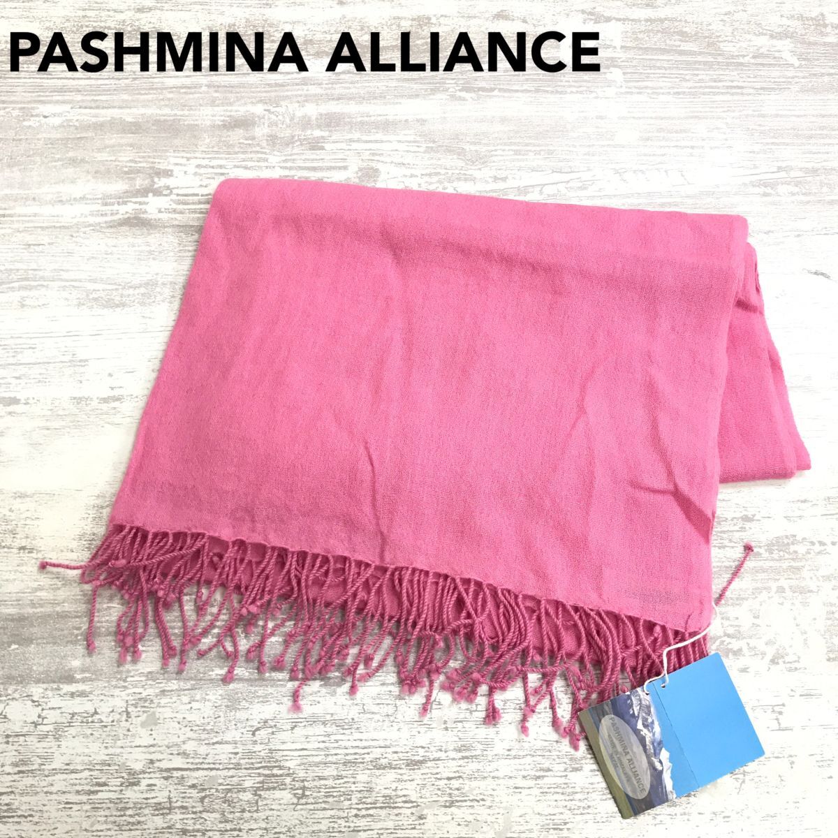 2O3054-R◆タグ付き 美品◆PASHMINA ALLIANCE パシュミナ カシミヤストール◆ヒマラヤ製 カシミヤ100% ピンク 大判 秋冬 防寒 膝掛け