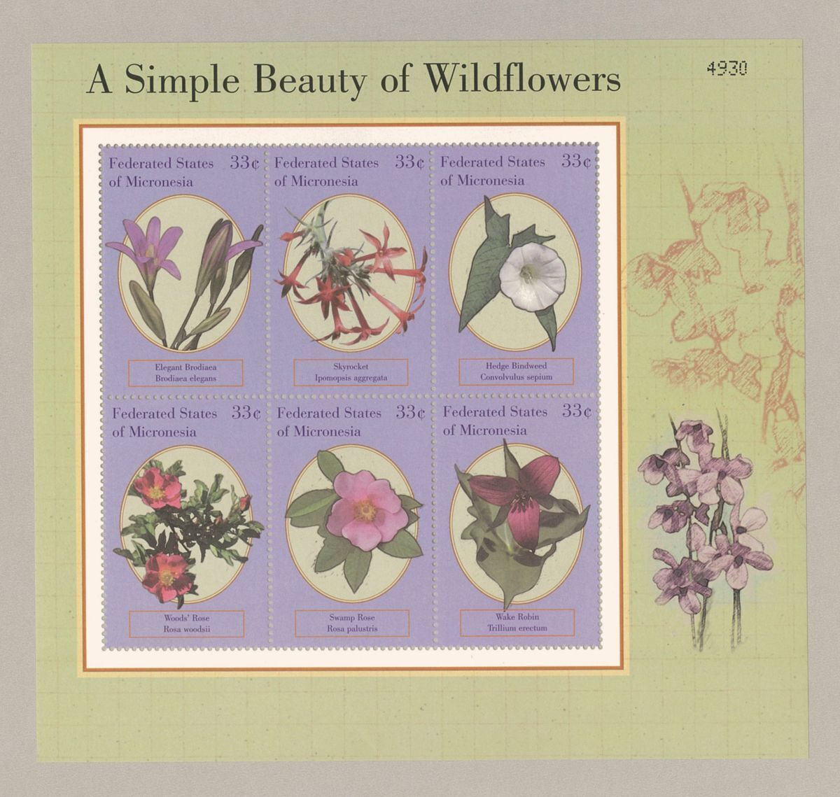 外国切手 ミクロネシア連邦「野花のシンプルな美しさ」花 6面シート 未使用