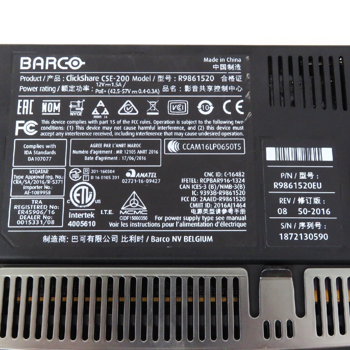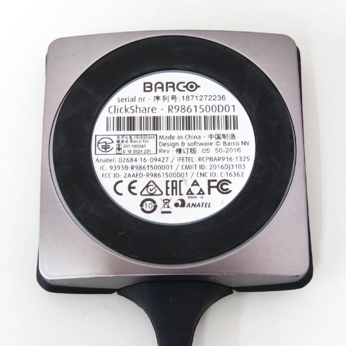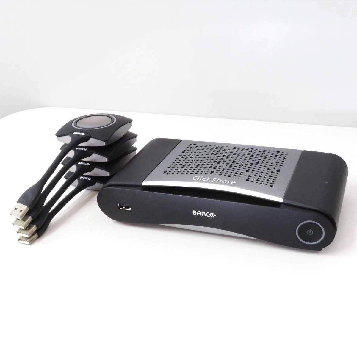 Barcoの無線対応 プレゼンテーション用機器 クリックシェアが入荷致しました。 ワンクリック、それだけで議論を加速させるクリックシェア。 PCに挿した「ClickShareボタン」を押すだけで、デスクトップの画面がワイヤレスで会議室内のAV機器に転送され、コンテンツを共有できます。 ソフトウェアのインストールや社内の無線ネットワークに入る必要はありません。 社内だけでなく、ゲストとのディスカッションでも活躍します。 ※こちらの商品はアンテナ部分が欠損しており、電源コードの付属がございません。通電確認済みです。予めご了承くださいませ。 |