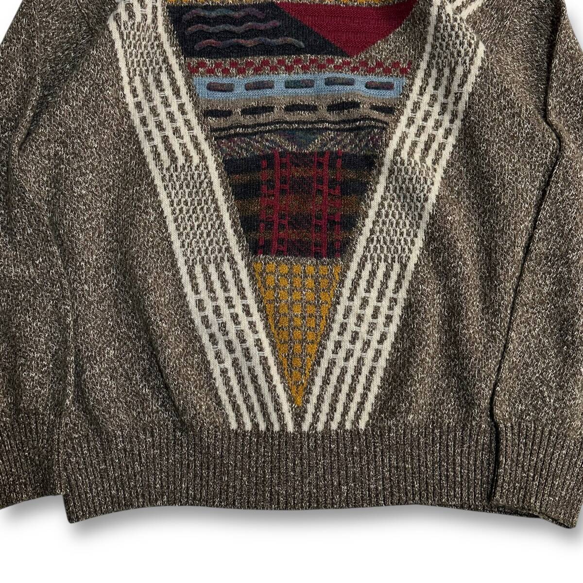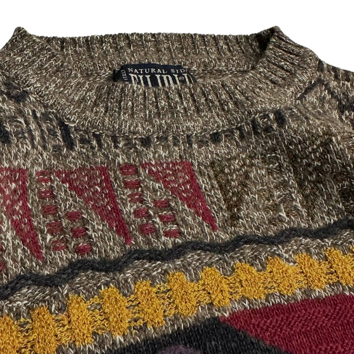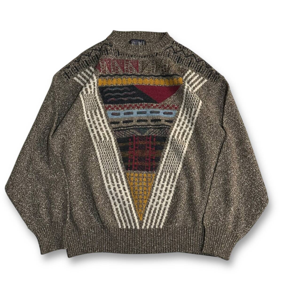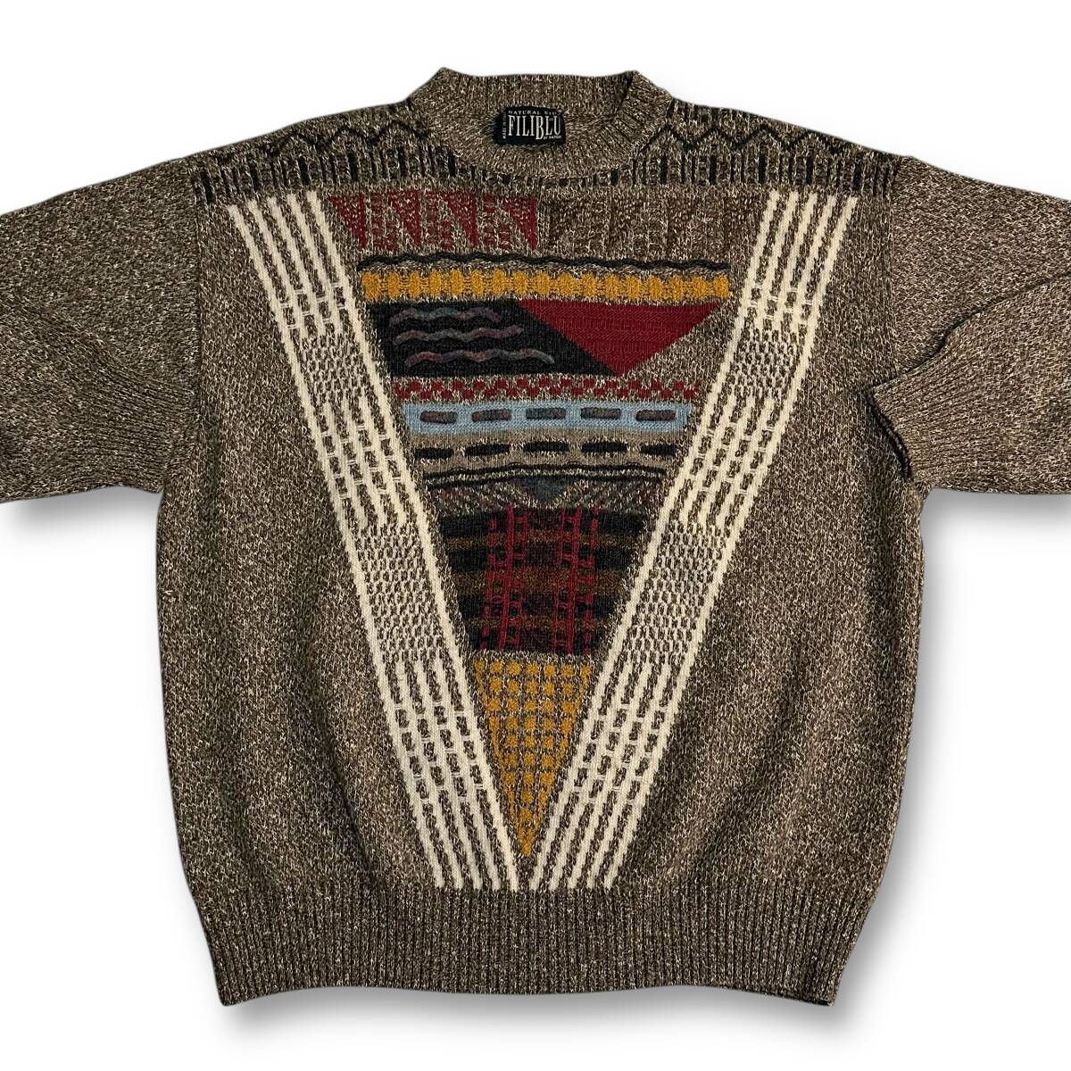 希少 秀逸【FILIBLU by BARONI】Euro vintage イタリア製 80s~ 立体デザイン ビンテージクルーネックニット ユーロ古着 レトロ