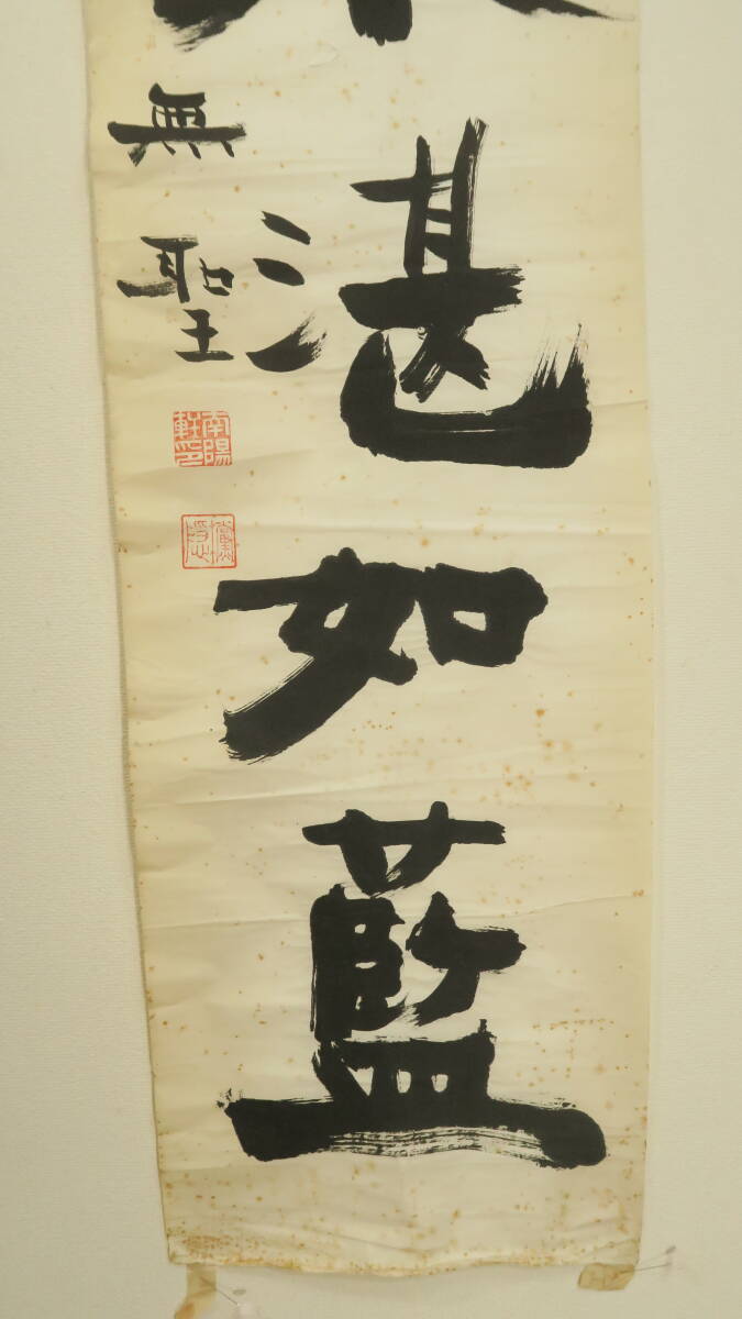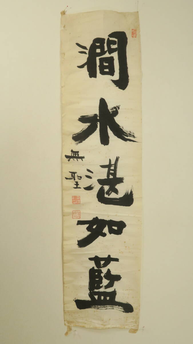 ●商品説明/飯田とう隠書(肉筆)・「澗水湛如藍」【真作】。飯田とう隠は、曹洞宗の僧侶。昭和6年に大阪府高槻市に少林窟道場を創設しました。彼は東京大学医学部を卒業後、広島の大本山佛通寺で香川寛量和尚に参禅し、その後、曹洞宗の僧侶として出家しました。独参や禅会を通じて多くの人々に教えを伝え、特に医師としての知識を活かしながら禅の修行を行っていました。彼の道場は、現在も坐禅会が続いており、多くの参禅者が訪れています。●本紙(紙本)寸法;縦138㎝×横34.5㎝。未表装(まくり)状態。シミ、破れ、痛み。●ご入札宜しくお願いいたします。※万が一【真作】でなかった場合、返品承ります。※落札後の値段交渉には応じかねますので、ご了承ください。