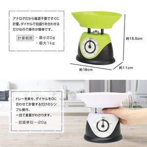 ≪仕様≫寸法:約W18×D11×H15.5cm。 重量:約180g。 材質:PP。 計量範囲:20~1000g。 最小表示:20g。 計量精度:20~250g ±20g250~500g ±20g500g超え±30g製菓に、調理に、シンプルで使いやすいクッキングスケール≪特長≫アナログだから電源不要ですぐに軽量。ダイヤルで目盛りを合わせるだけなので操作が簡単です。軽量範囲:最小20g 最大1kgトレーを乗せ、ダイヤルを0に合わせて軽量するだけのシンプル操作。一目で重量がわかります。目盛単位:20gトレ―は取り外し可能。計量する食材を入れやすく、水洗いもできていつも清潔に使用できます。
