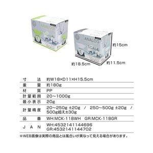 ≪仕様≫寸法:約W18×D11×H15.5cm。 重量:約180g。 材質:PP。 計量範囲:20〜1000g。 最小表示:20g。 計量精度:20〜250g ±20g250〜500g ±20g500g超え±30g