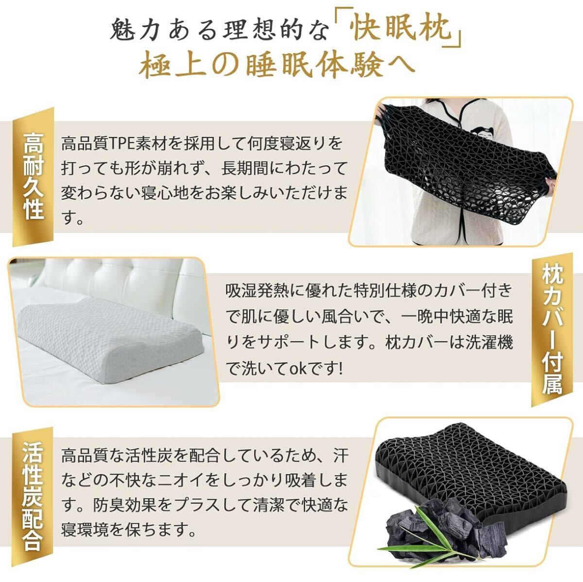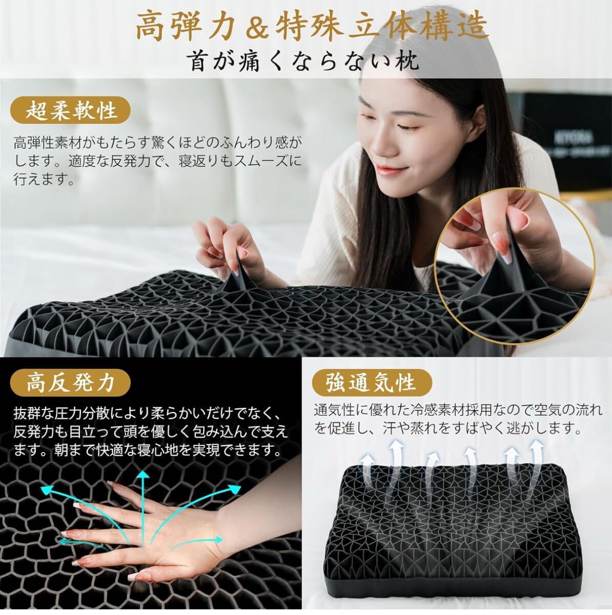 。【枕 人気& 高弾性TPE素材の無重力枕】当店の枕は、数千回に及ぶ厳格な品質試験を重ねて開発しました。高弾性TPE素材を一体成型した特殊構造により、抜群の耐久性を実現できて長い時間を経ても変形しにくいです。