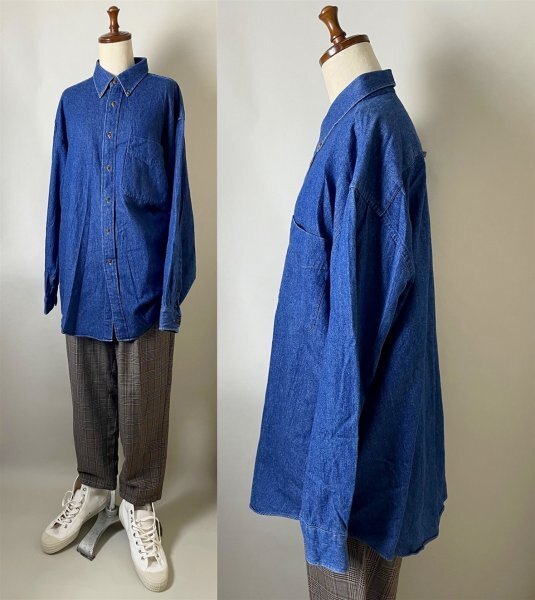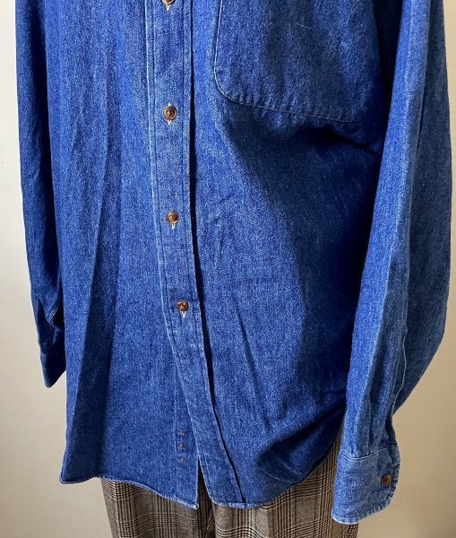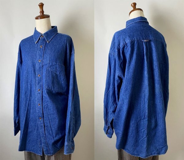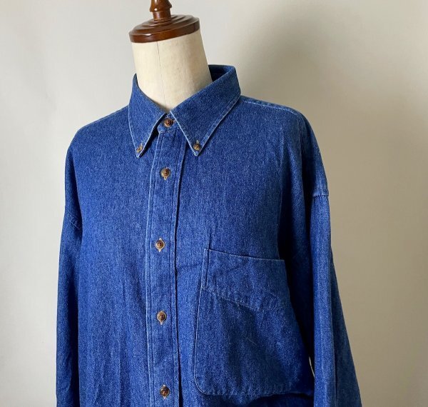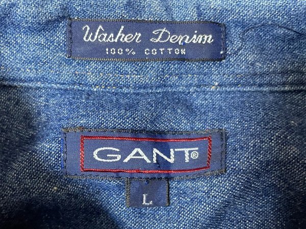 ★【美品 90年代 90s 国内正規品 マレーシア製 替えボタン付き】GANT ガント コットン100% ボタンダウン デニム シャツ 長袖 L インディゴ