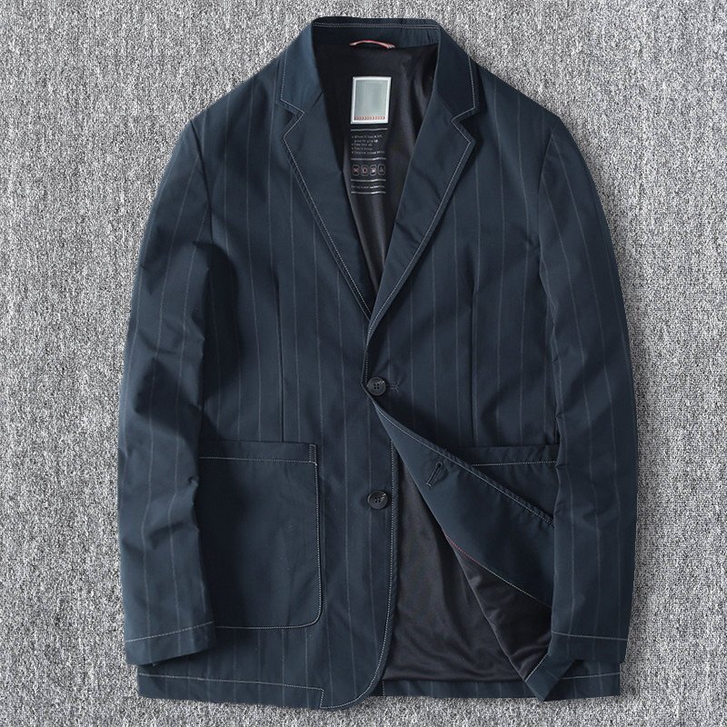 人気推薦 国内未販売 新品 メンズ テーラードジャケット 春秋 ストライプ スーツ 薄手 通気性 ビジネス ジャケット/紺色T6025-XL