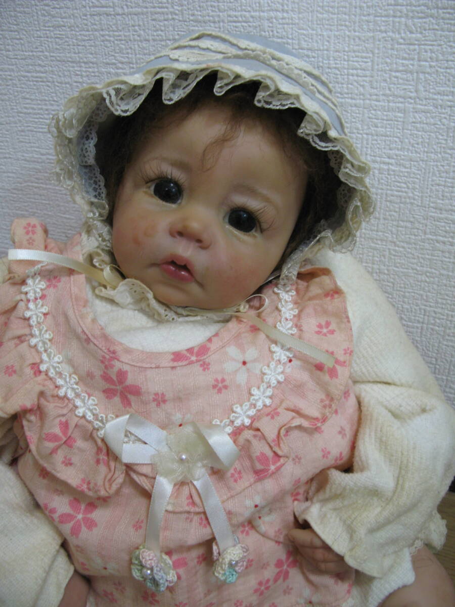 本物の新生児のような超リアルな赤ちゃん人形のことです。 世界に一人だけのもので、すべて1体1体手作りのリアル赤ちゃん人形です。 女性、男性問わず、愛好家の癒しとなるフェイクベイビー(生まれ代わりの赤ちゃん)と呼ばれる人形が欧米では非常に人気のようです。 子供を失った女性や子供に恵まれない女性の悲しみや不安の癒しとして、このフェイクベイビーは医学的にも立証されています。※もちろん子供がいらっしゃる方や、子供のために購入されるような方もいらっしゃるみたいです。 このリアル赤ちゃん人形は、通称フェイクベイビーと呼ばれていますが「フェイク」は、偽りという意味なので、その呼び方を嫌う人はリボーンドール(ベイビーの生まれ代わりの人形)という風に呼びます。日本だとこの呼び方が主流のようです。 リアルなリボーンドールです。 抱きしめるのにちょうどよいサイズです。 腕と脚は完璧な状態で、血管や手足や指のしわなども見事に再現されております。 両肩と両足の付け根が可動しますので、ある程度のポーズ変更できます。 ドゥスエード布による柔らかいボディを持ち、ガラスビーズとポリフィルによって形成されてます。 ヘアはマイクロ化学繊維で、根元から細い髪の毛が植えられているので、かなりリアルで、すけ具合が本物の赤ちゃんのようです。 GHSP塗料で手作業で手塗りされておりますので、非常に精密です。 リアルペイント 上睫毛植毛 フランネルボディが多い中、 この子はスエードボディとなっております。 身長 約58cm 膝が曲がっている状態での計測なので、もし膝が曲がっていないならば、60cm超えます。 ※座らせた状態での座高は約33cmです。 中古ですが、美品です。 割れ、欠け、破損はありません。 見落としがありましたらすみません。 リボーンドールは手作りですので、 少しの事でも気になる方、 少しの事でもクレームをつける方、神経質な方は、 ご購入はご遠慮くださいませ。 【注意事項】 上記説明文にいろいろと述べておりますが、文章では表しにくい個所や、ほとんど気づかないような傷や汚れがあるかもしれませんので、必ず「写真」で確認後、ご購入を検討していただければと思います。 |