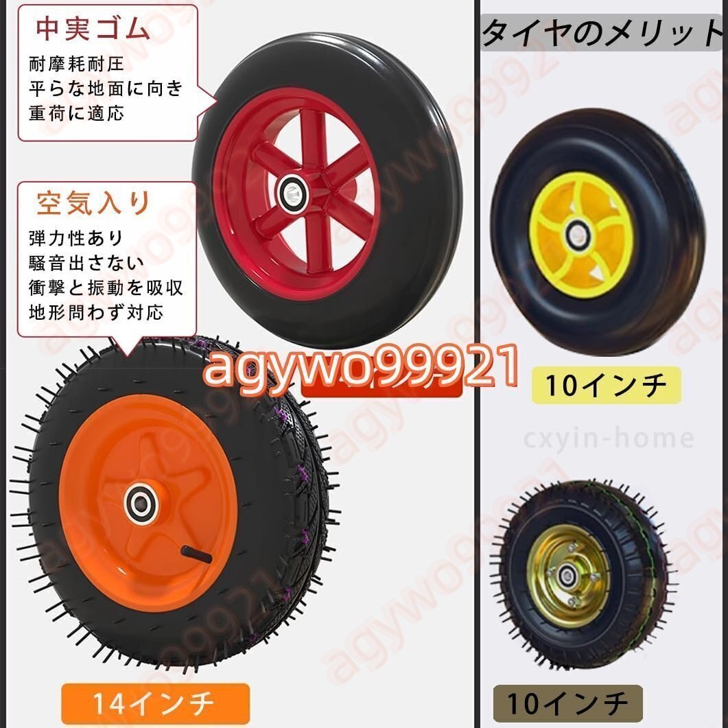 【製品の詳細】質量:約22.5kg。ボディ質量:約16kg。全長:約150cm。荷台寸法:約27×39cm。耐荷重:約650kg。タイヤ:14インチの中実(ソリッド)ゴムタイヤ。タイプ:アングル。
